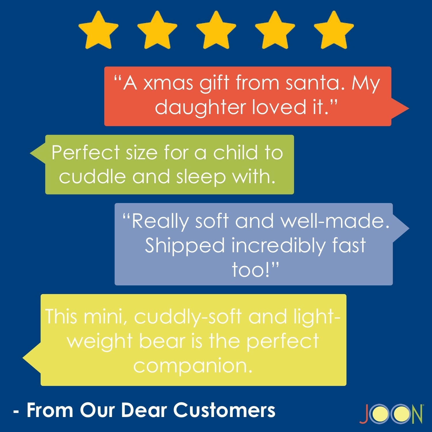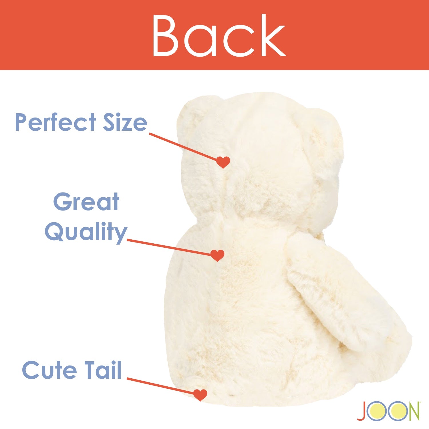 This adorable JOON teddy bear with ribbon is about 13 inches tall. The teddy bear huggable, love-able stuffed animal. Complete with a ribbon on the neck, this mini best friend will look great in any bedroom or playroom. The JOON teddy bear features: Extra-soft plush polyester fabric, plastic eyes, fully embroidered paw printed feet, and a ribbon on the bear's neck. This is the smallest JOON Bear in the family. When he needs a bath, surface wash him with a damp cloth. Height: about 13" from foot to ears. Height Sitting Down: Approximately 9 inches. Color: Cream. Size: 13" x 7.5" x 4.5".