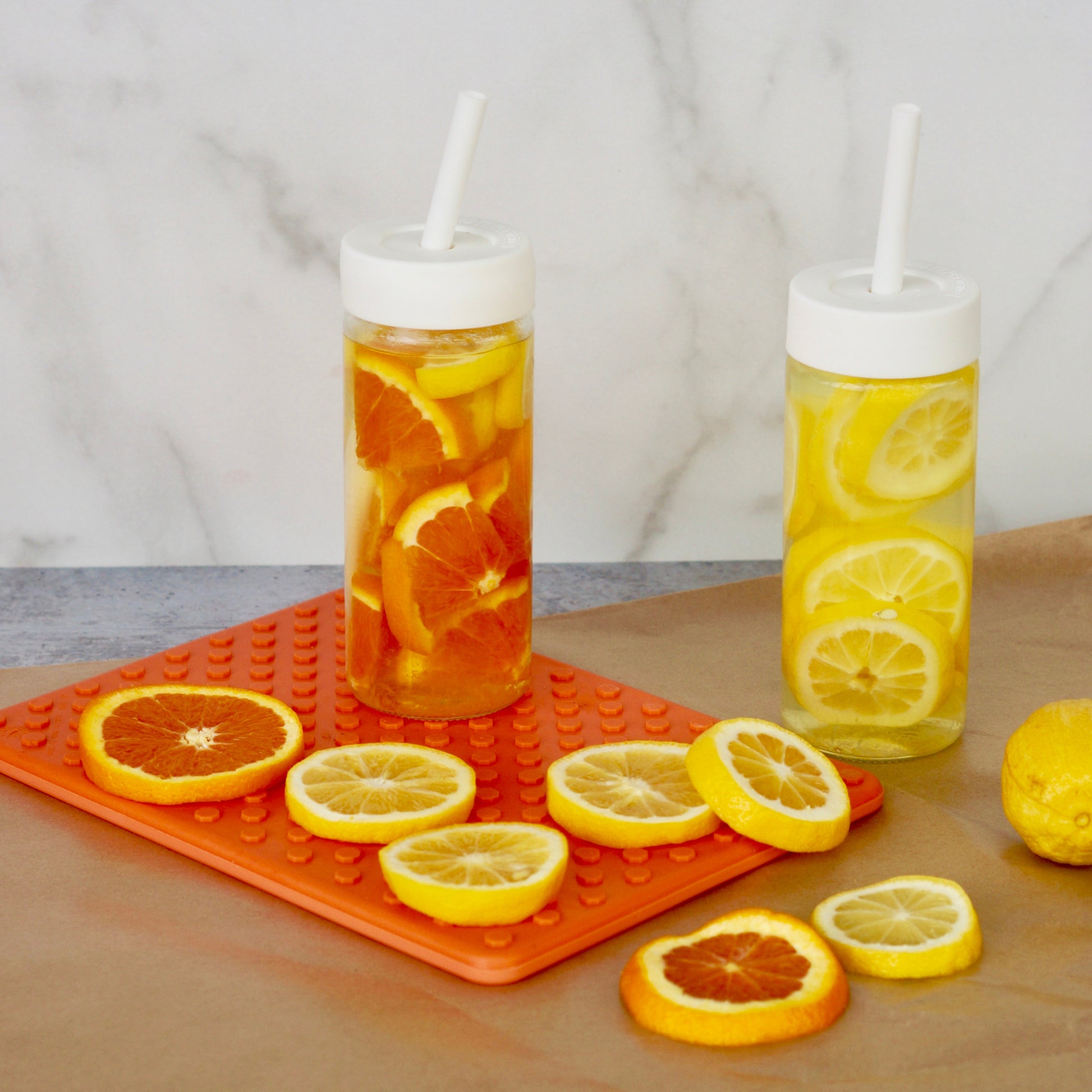 VERSATILE ... Use the bottles plain with or without the sleeve to store juices and smoothies in the fridge or use them with the sleeve & straw lid when on-the-go.