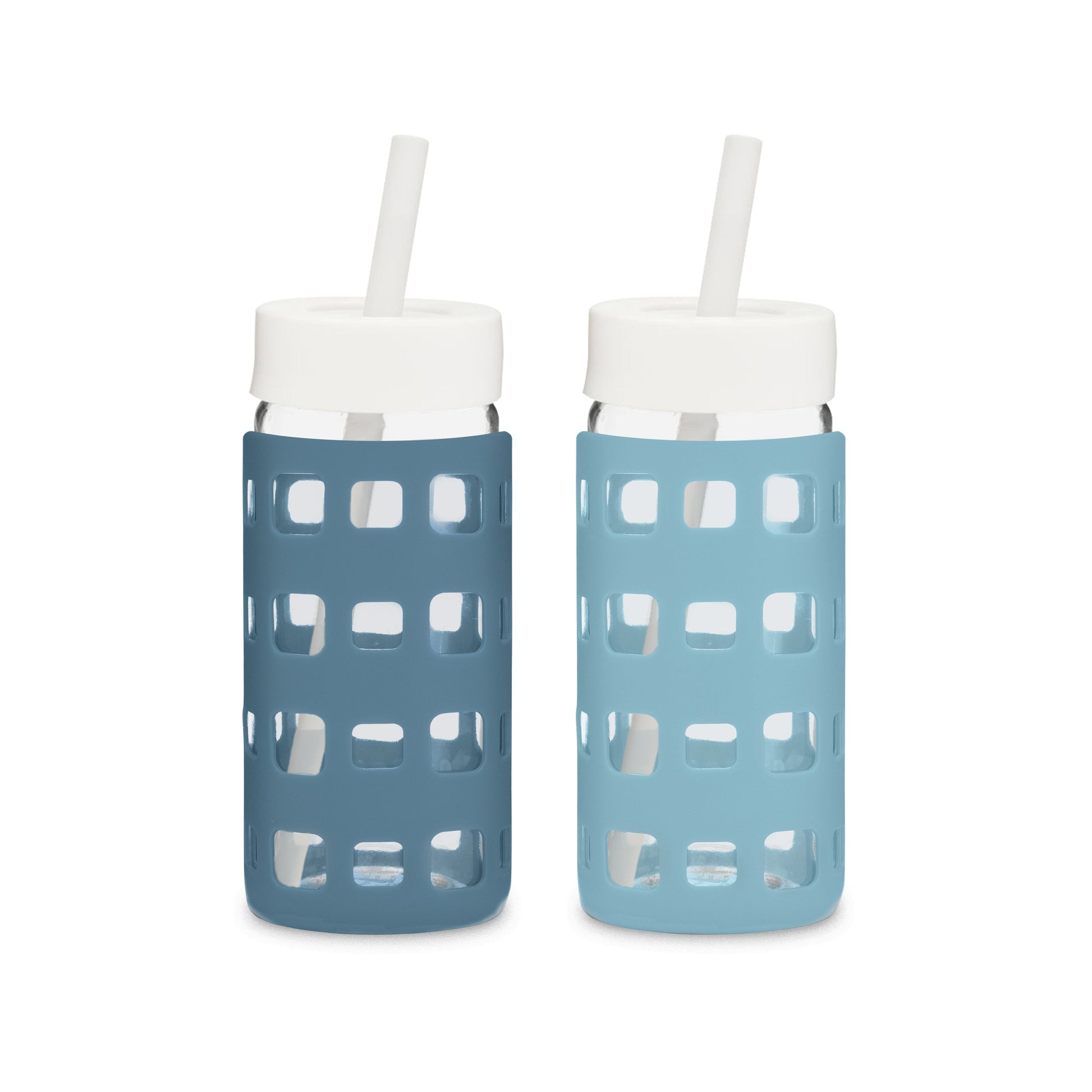 2- PACK TUMBLER SET... You'll get 2 premium reusable glass, 16 ounce, wide-mouth bottles with white lids paired with 2 silicone straw lids, and 2 silicone straws. Choose from 3 different color silicone carrier sleeves or no sleeves.