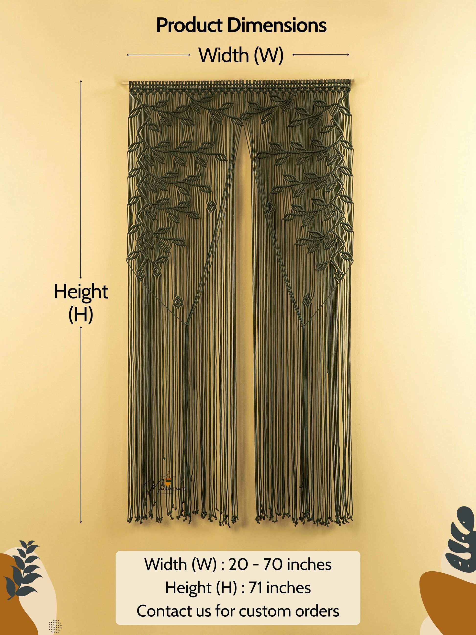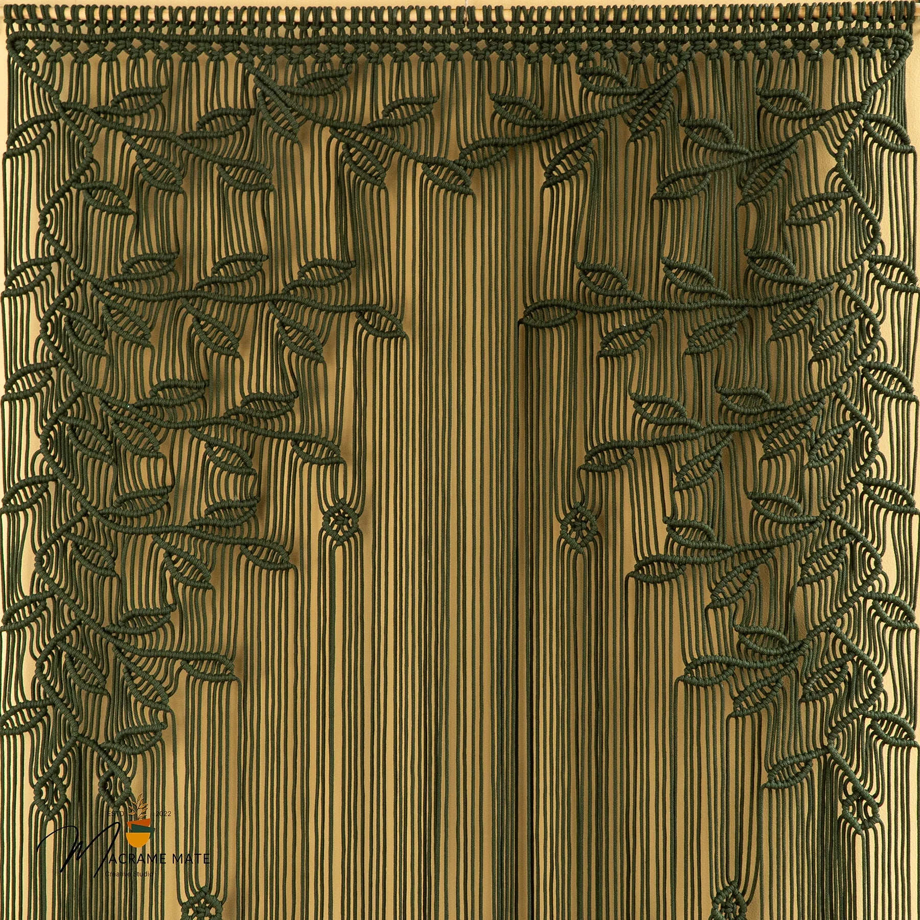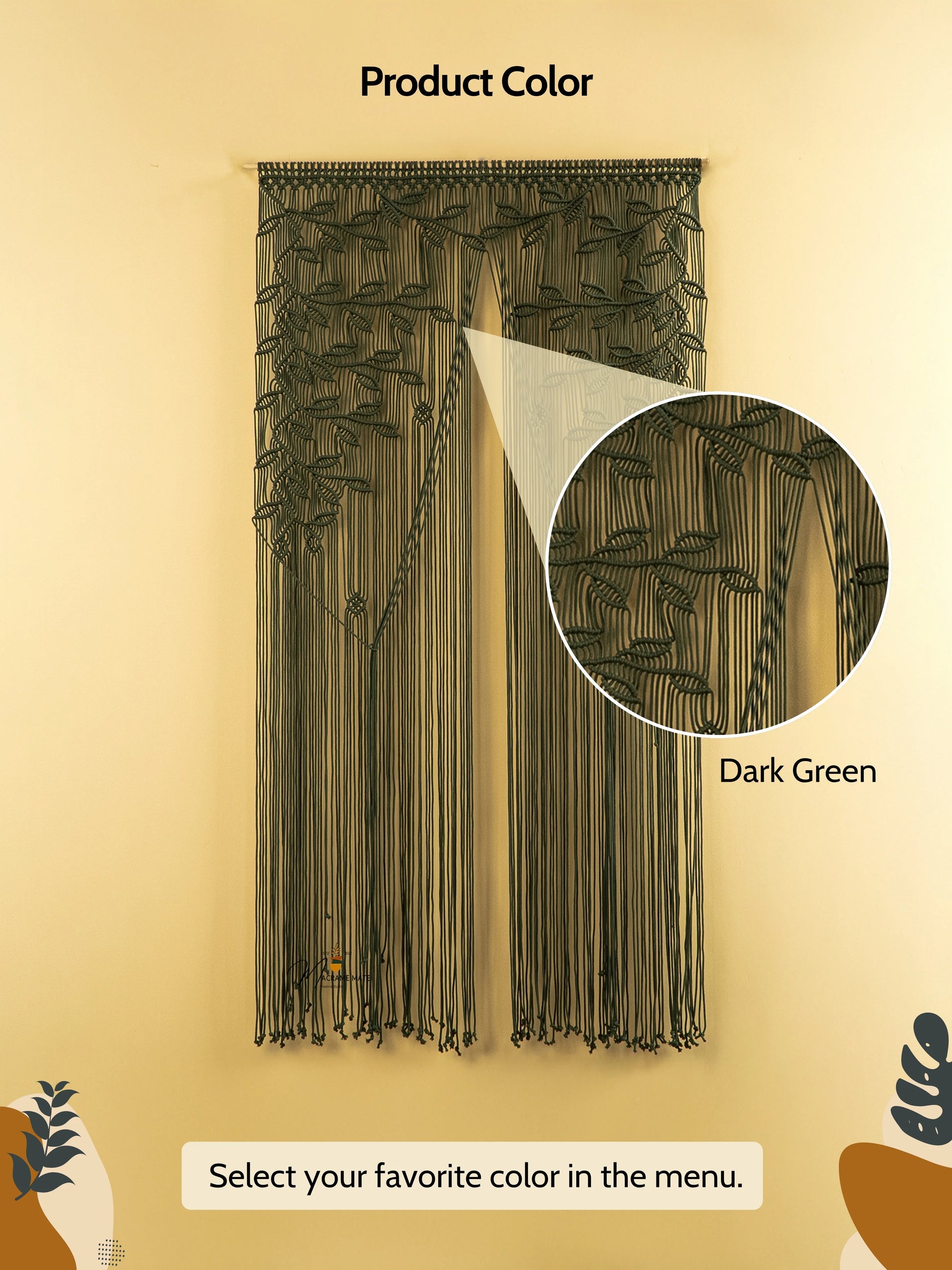 Enhance your space with the natural elegance of our Juno Dark Green Macrame Leaf Door Curtain. Expertly handcrafted from premium cotton cords, this stunning piece features intricate leaf patterns in lush dark green, creating a serene, earthy vibe perfect for doorways, windows, or room dividers. The lightweight yet durable design allows soft light to filter through while adding texture and a touch of bohemian charm to any room.
