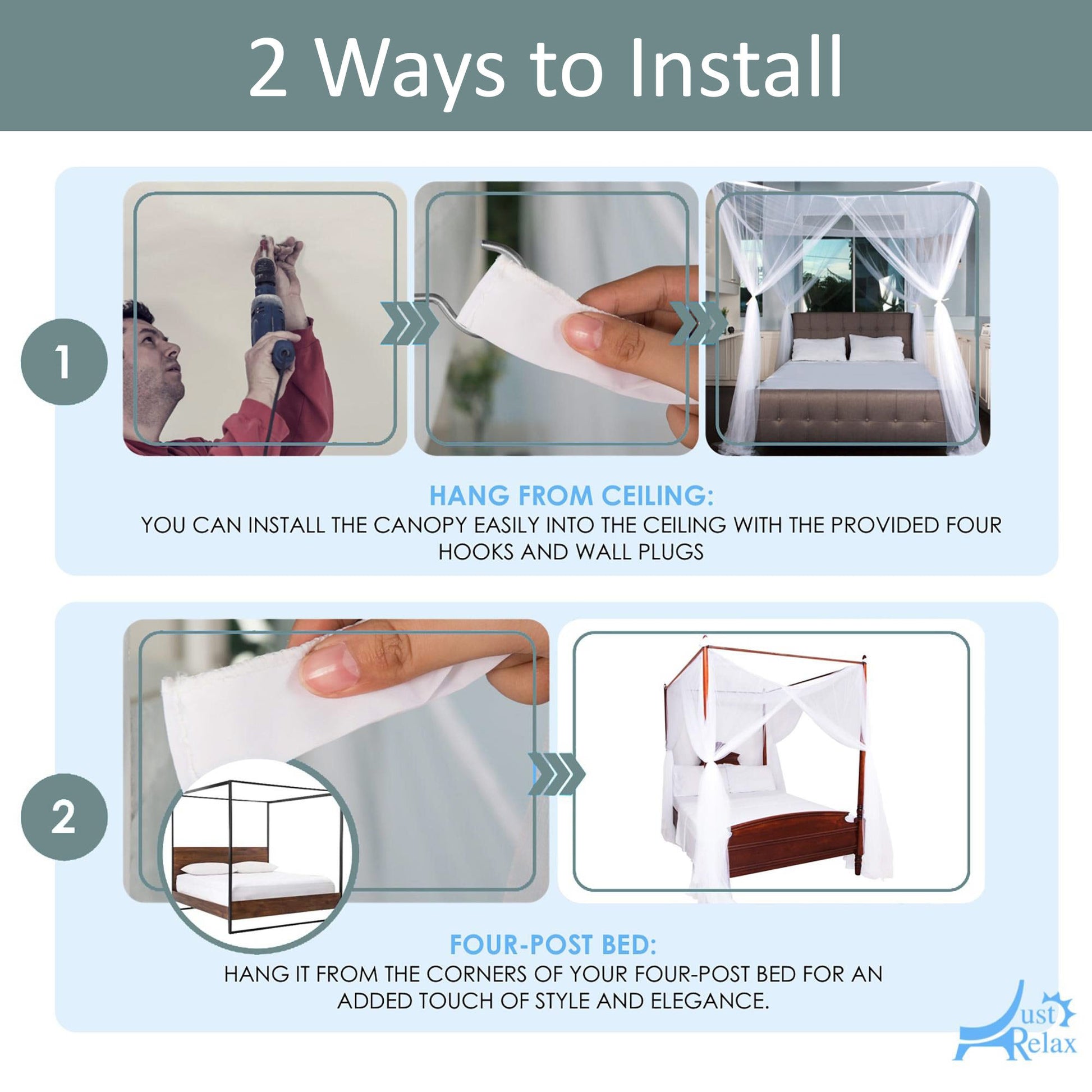 The Just Relax Four Corner Post Bed Canopy Net is the ultimate solution for creating a comfortable sleep environment. With its advanced features and luxurious design, this canopy is sure to become a favorite in your home.