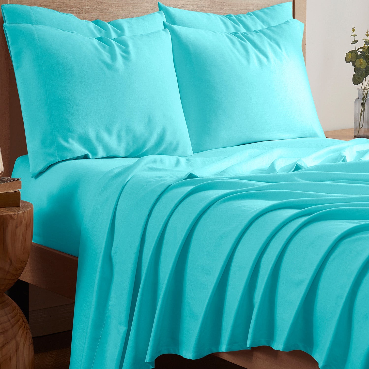 Included: Set Includes: One (1) fitted sheet, One (1) flat sheet, and Four (4) pillowcases