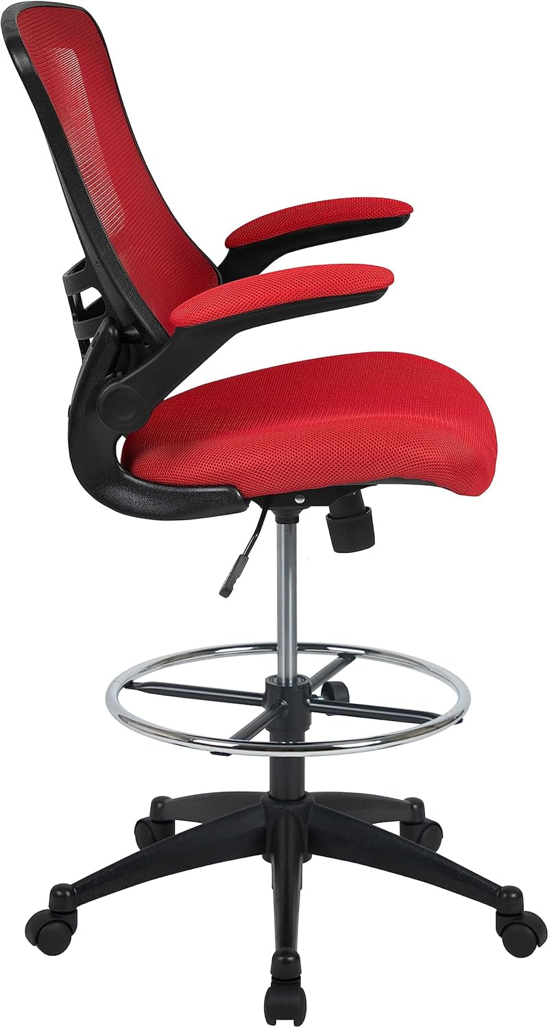 Kelista Red Mid Back Swivel Office Chair With Flip Armrests