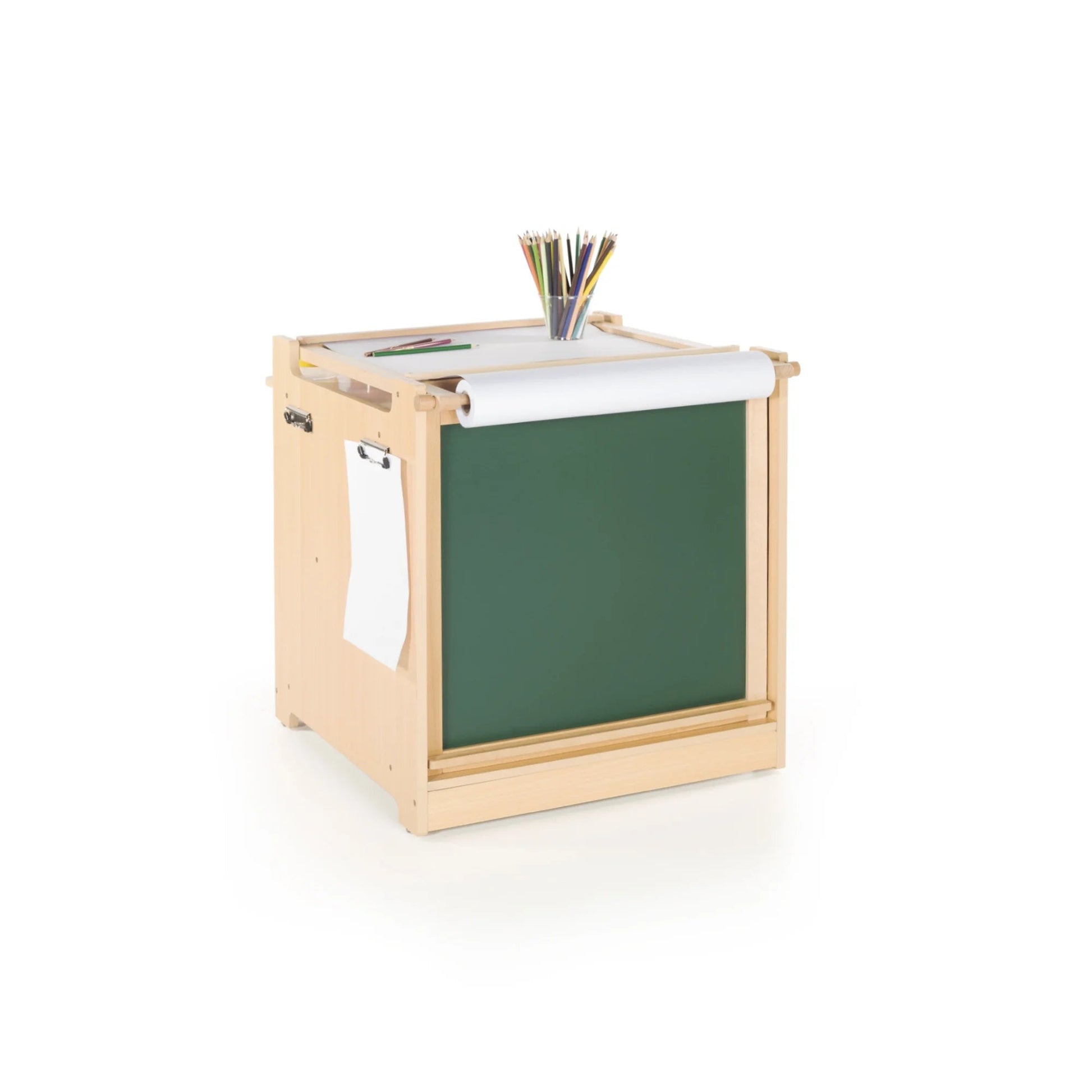- 3-IN-1 ART AND ACTIVITY CENTER FOR PLAYROOMS, CLASSROOMS, AND HOMESCHOOL SPACES: Multiple children 3 and up can create at once using this comprehensive art station. Set comes with 5 paint cups, a full roll of paper, and side clips to display finished work