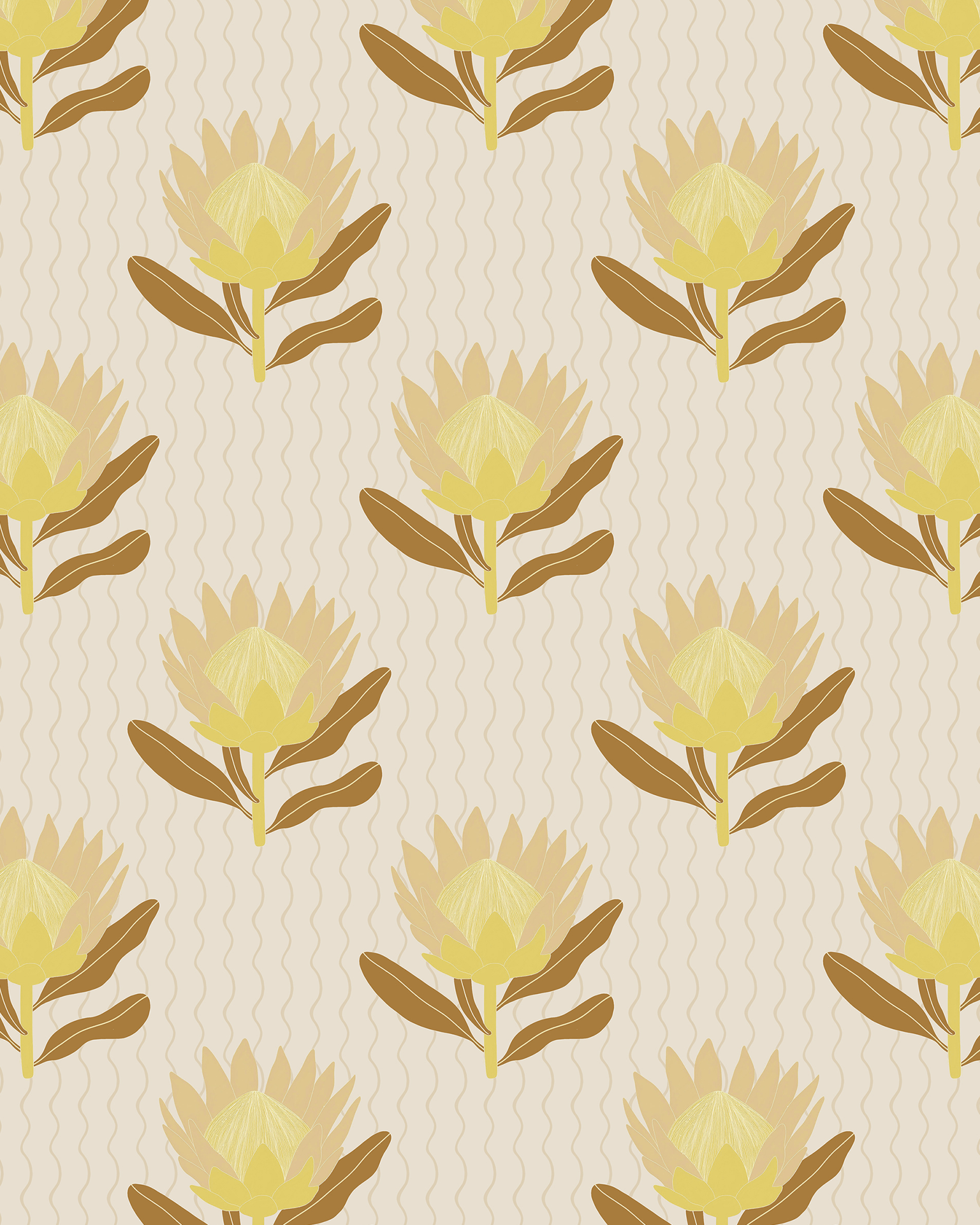 King Protea Wallpaper, neutral and brown mustard