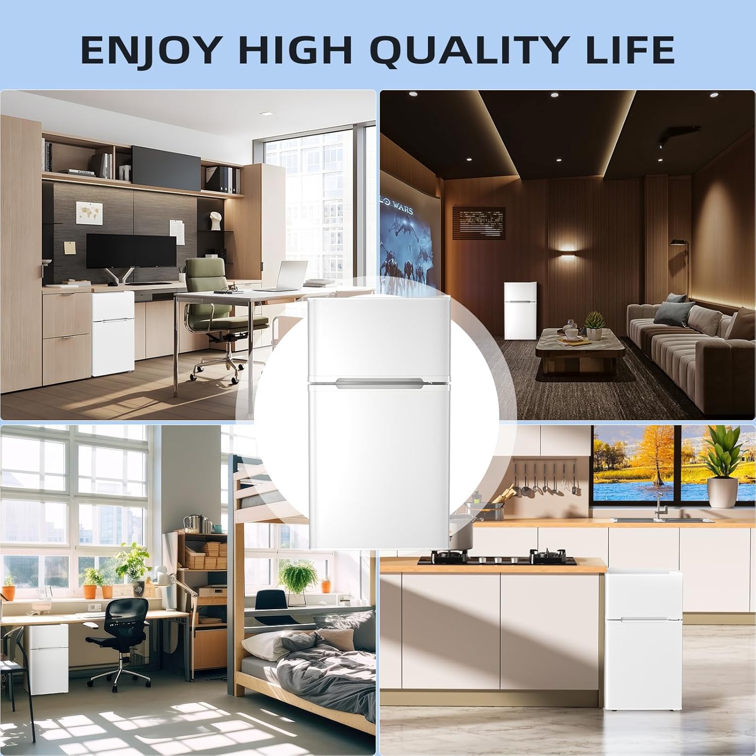 - Multi-Function Storage - Kismile compact mini refrigerator combines freezing and refrigerator functions.Compared with single-door small refrigerators, dual-temperature mini fridge have independent refrigerator and freezer areas, which can better classify and store different types of food