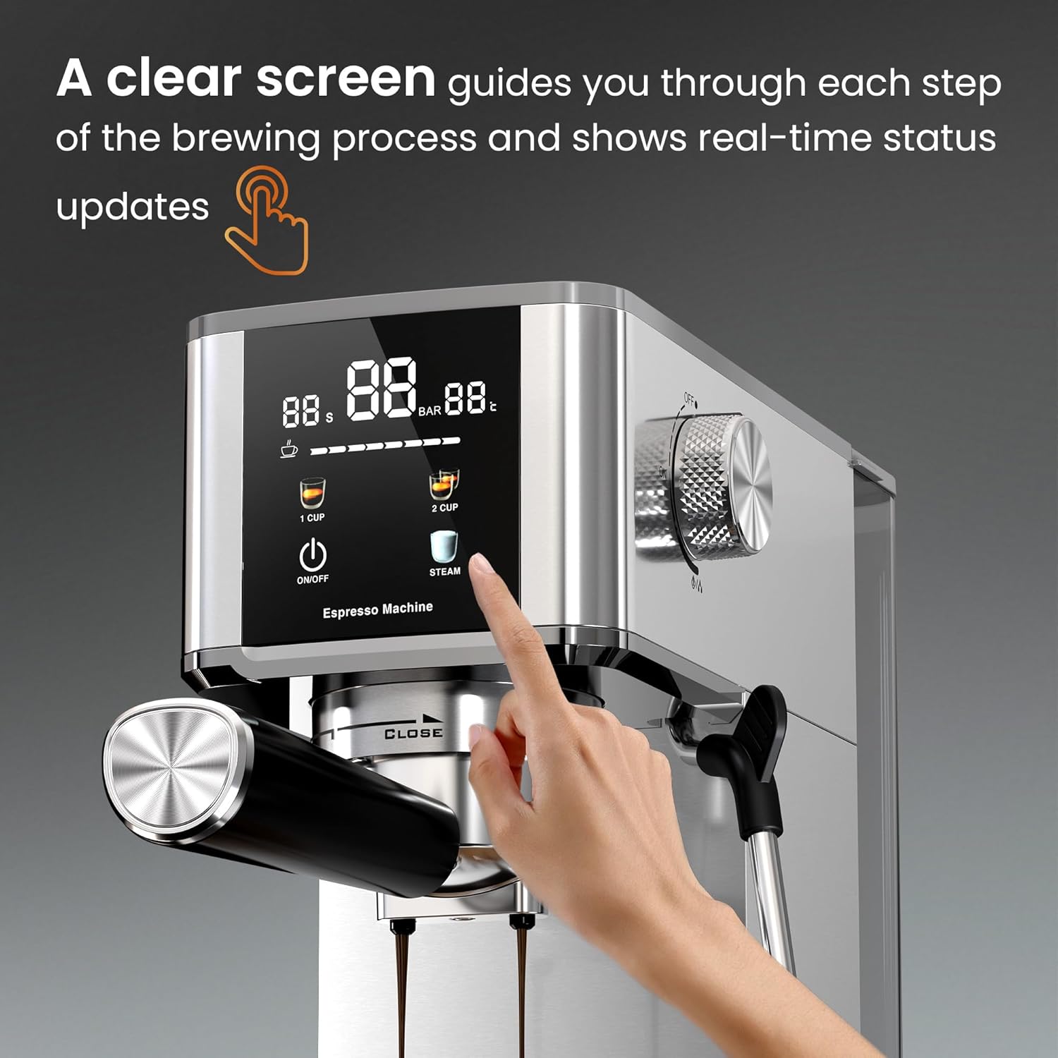 Kismile Espresso Coffee Maker Machine 20 Bar, with Milk Frother Steam Wand CM8032