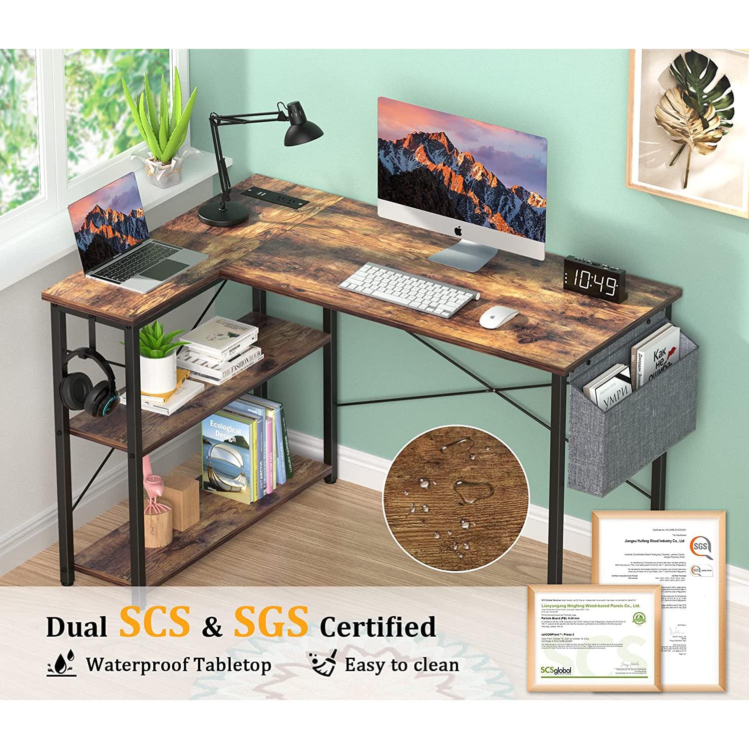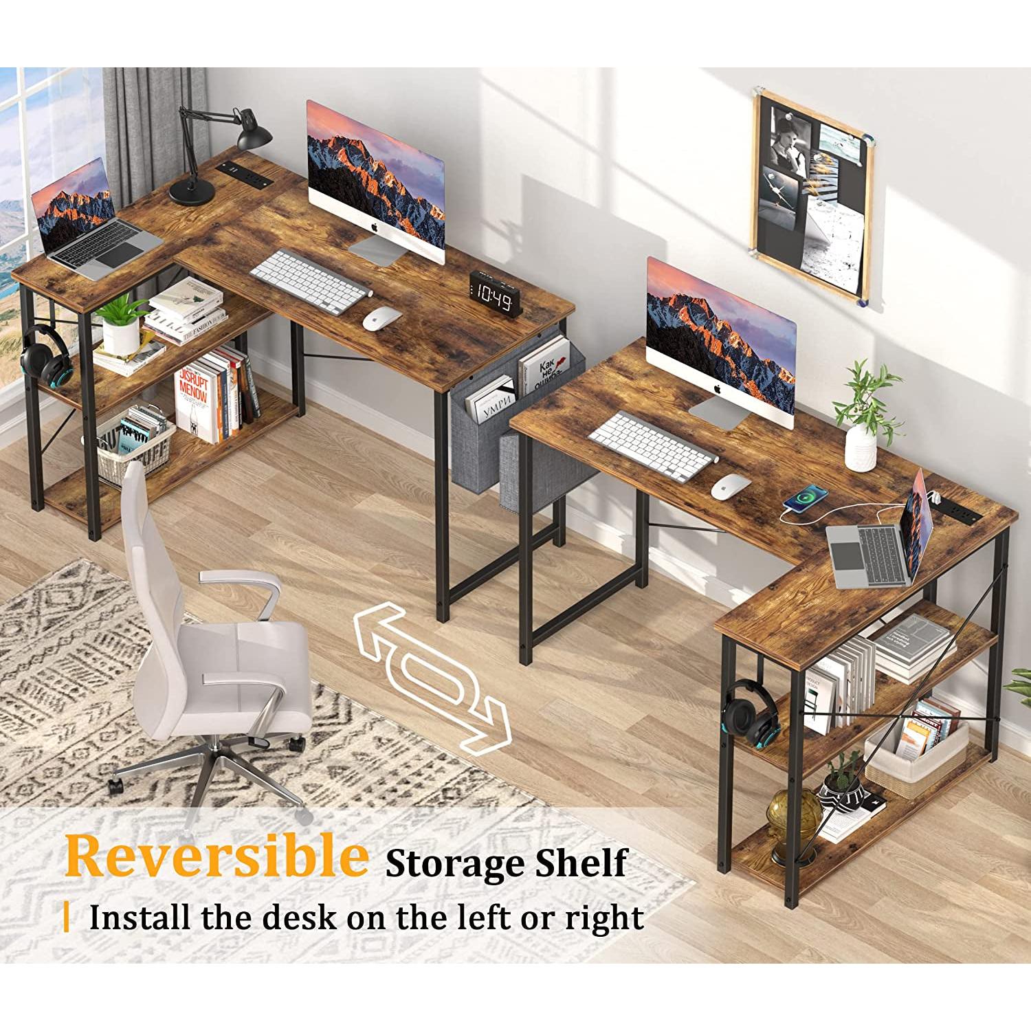 L Shaped Desk With 2 USB Ports And Outlets For Home Office