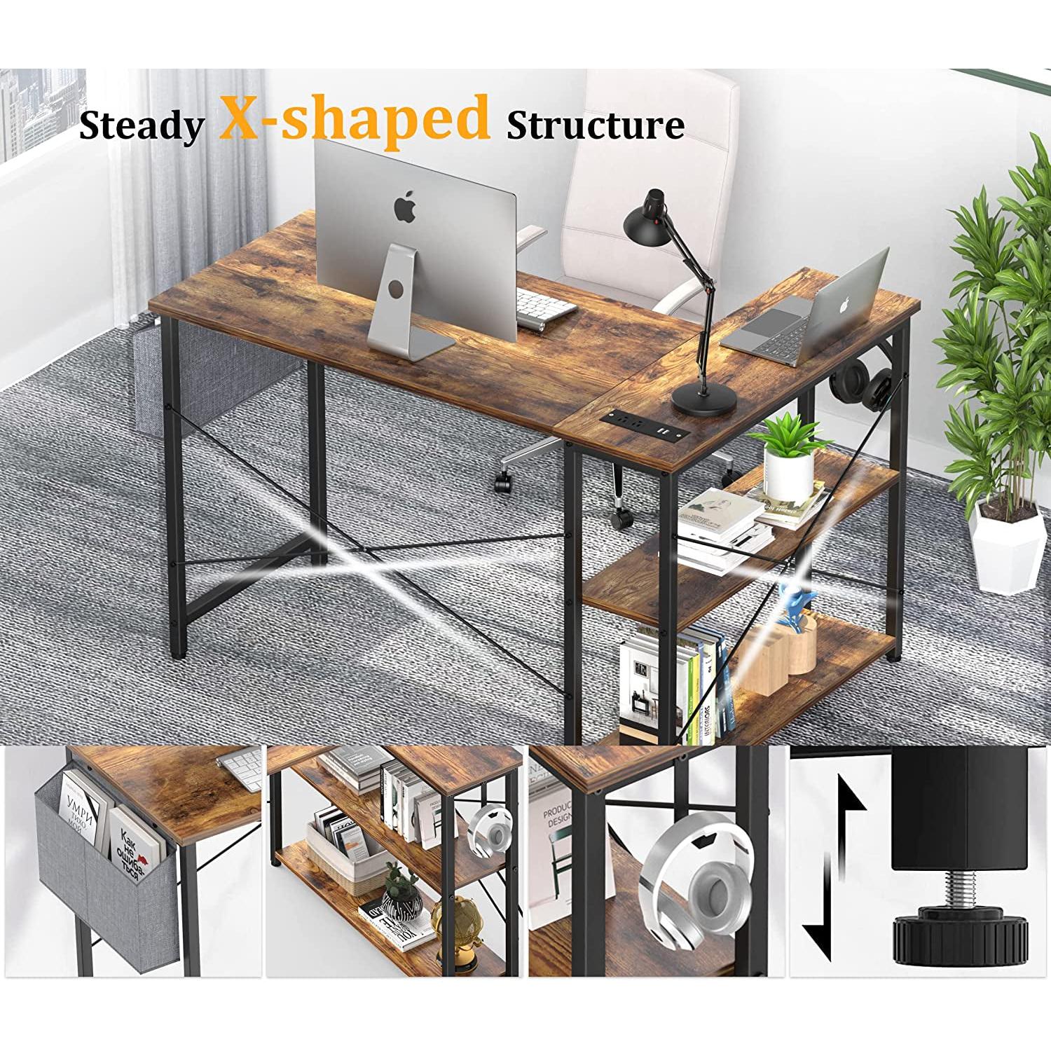 - Large storage and organization: Two-tier shelves, an additional storage bag, and a versatile hook for headphones or bags help keep your desk surface clear.