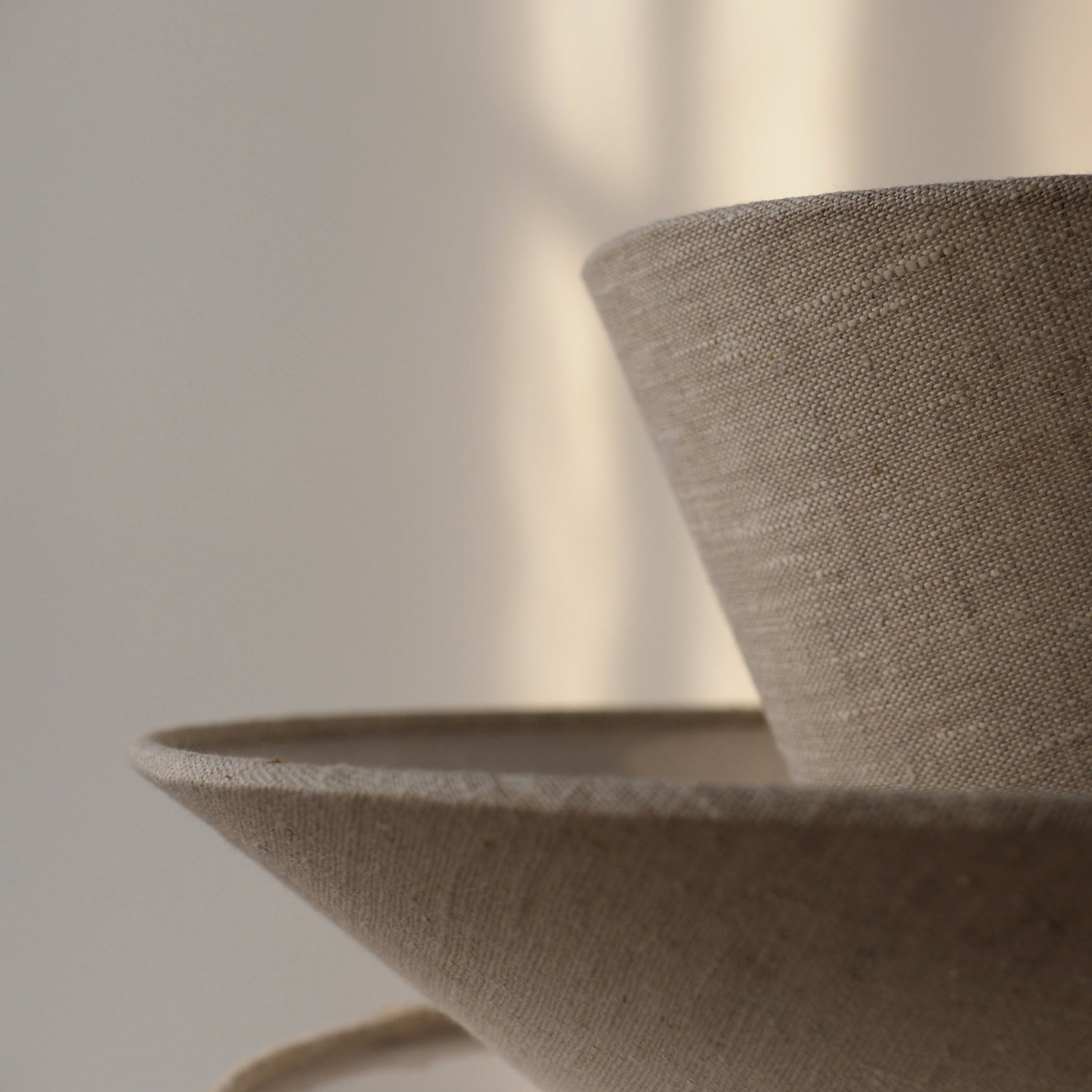 The Lag Lamp is a simple pendant lamp comprised of three transluscent layers. Each layer is made of unbleached, organic cotton to give warmth the otherwise modern aesthetic.