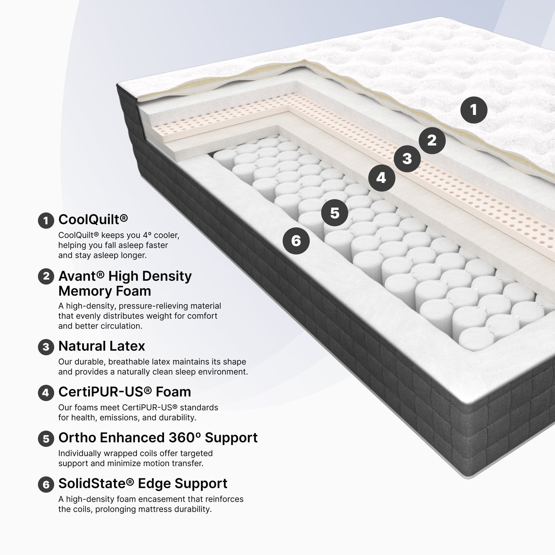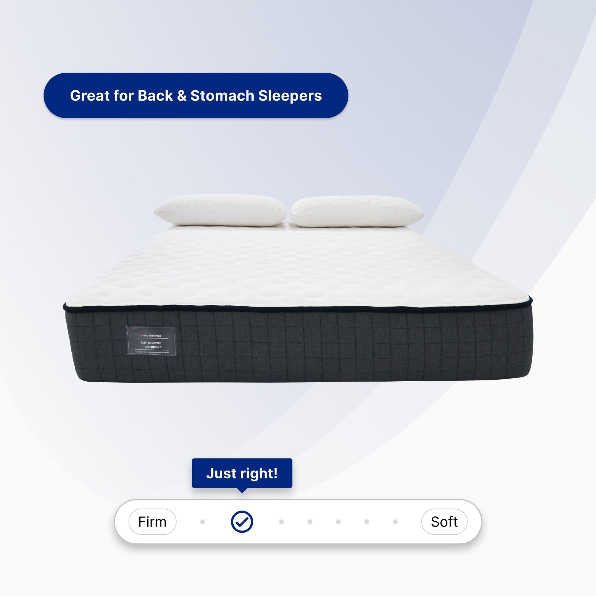 From Ortho's finest Reserve Collection, the Lansdowne Firm is great for back sleepers who want an innerspring feel with body-contouring foam top. Premium features include CoolQuilt®, Avant Foam®, Ortho Enhanced 360° Support and Dunlop Latex.