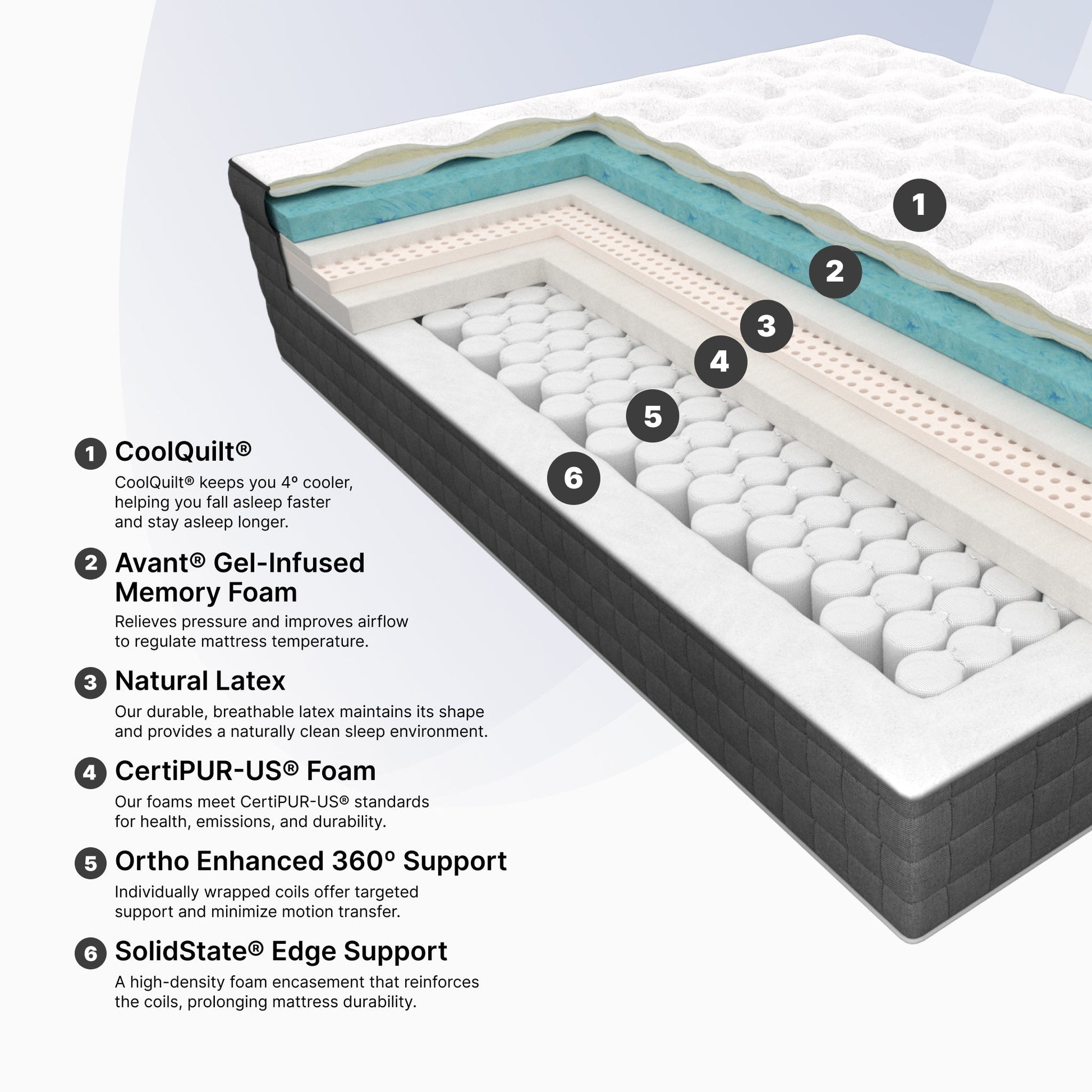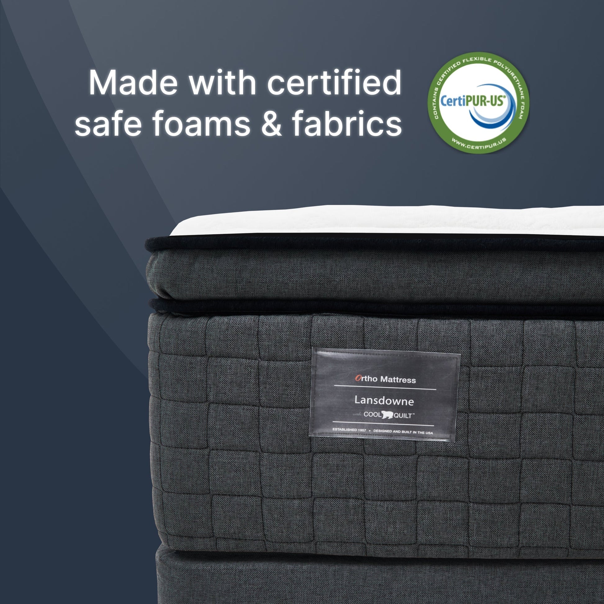 The Lansdowne Luxury Box Top combines the feel of an innerspring, the contoured support of foam, and the comfort of a pillow top. Premium features include CoolQuilt®, Avant® Foam, Ortho's Enhanced 360° Support and Dunlop Latex.
