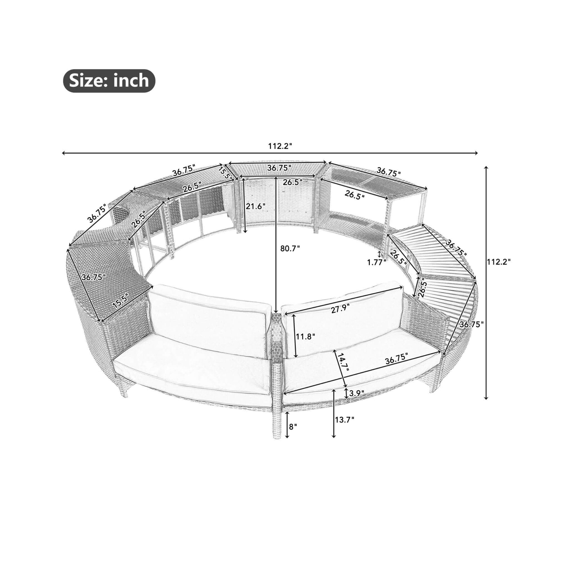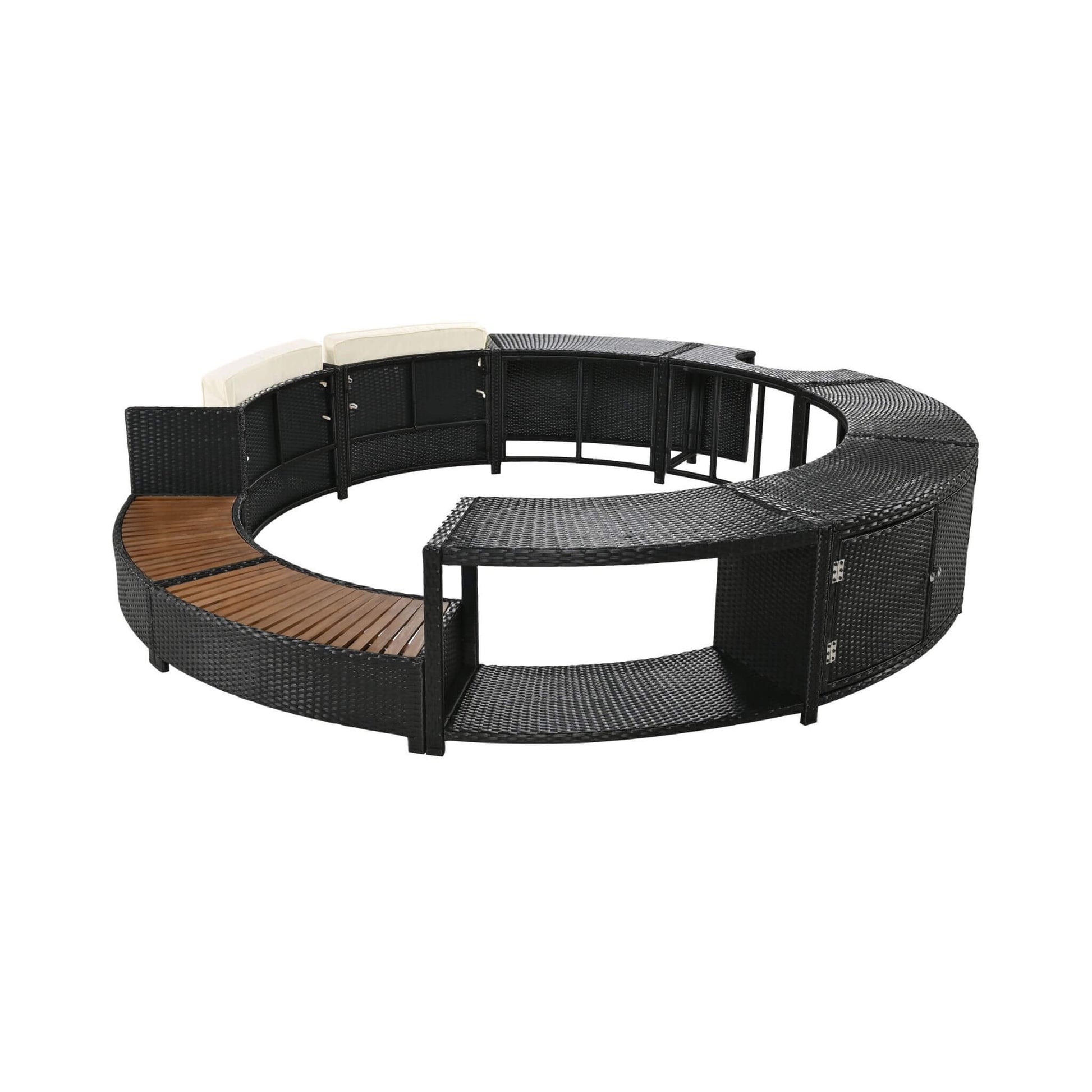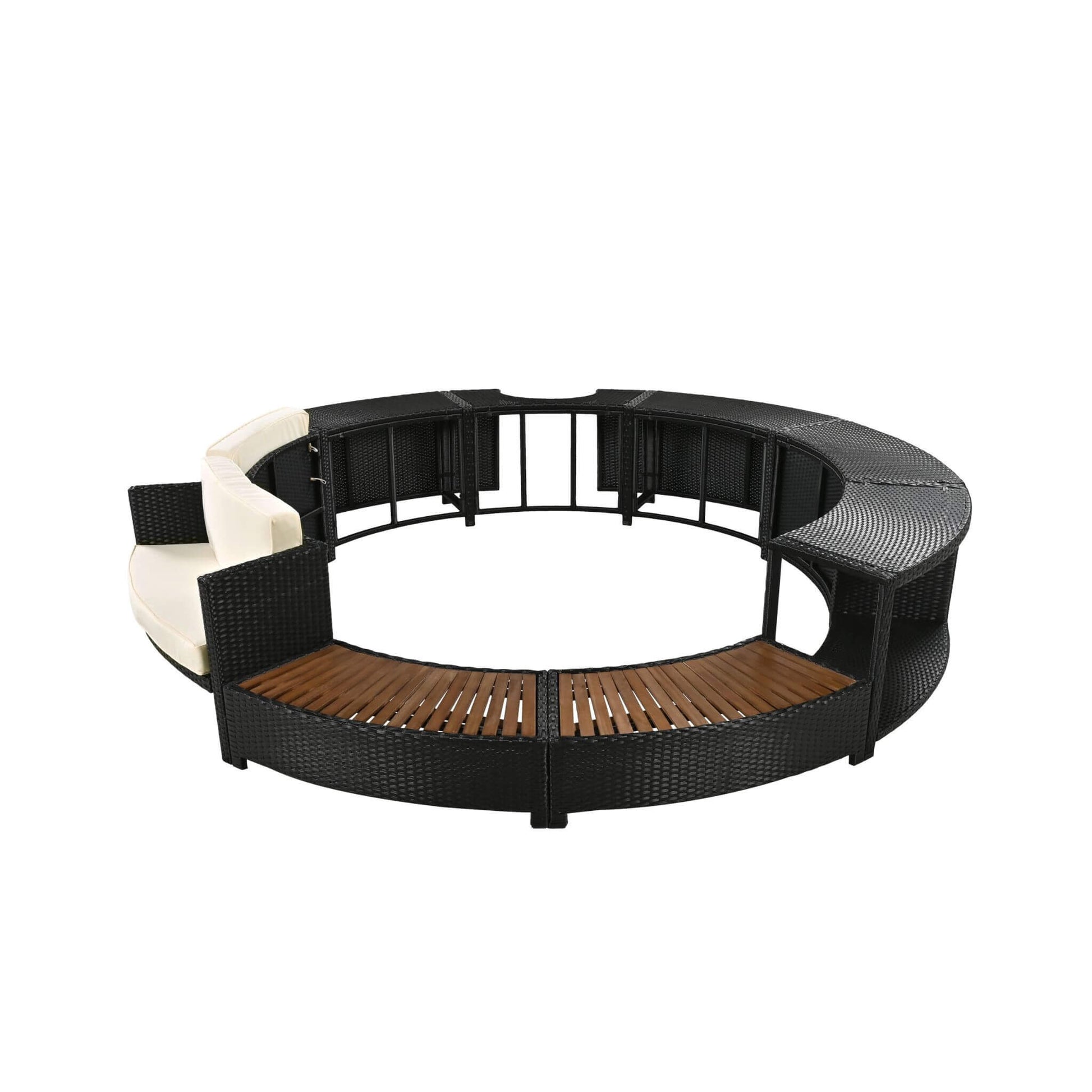 Large Premium Surround Spa Patio Rattan Sofa Set With Storage Compartments And Cushions (SAK75629)