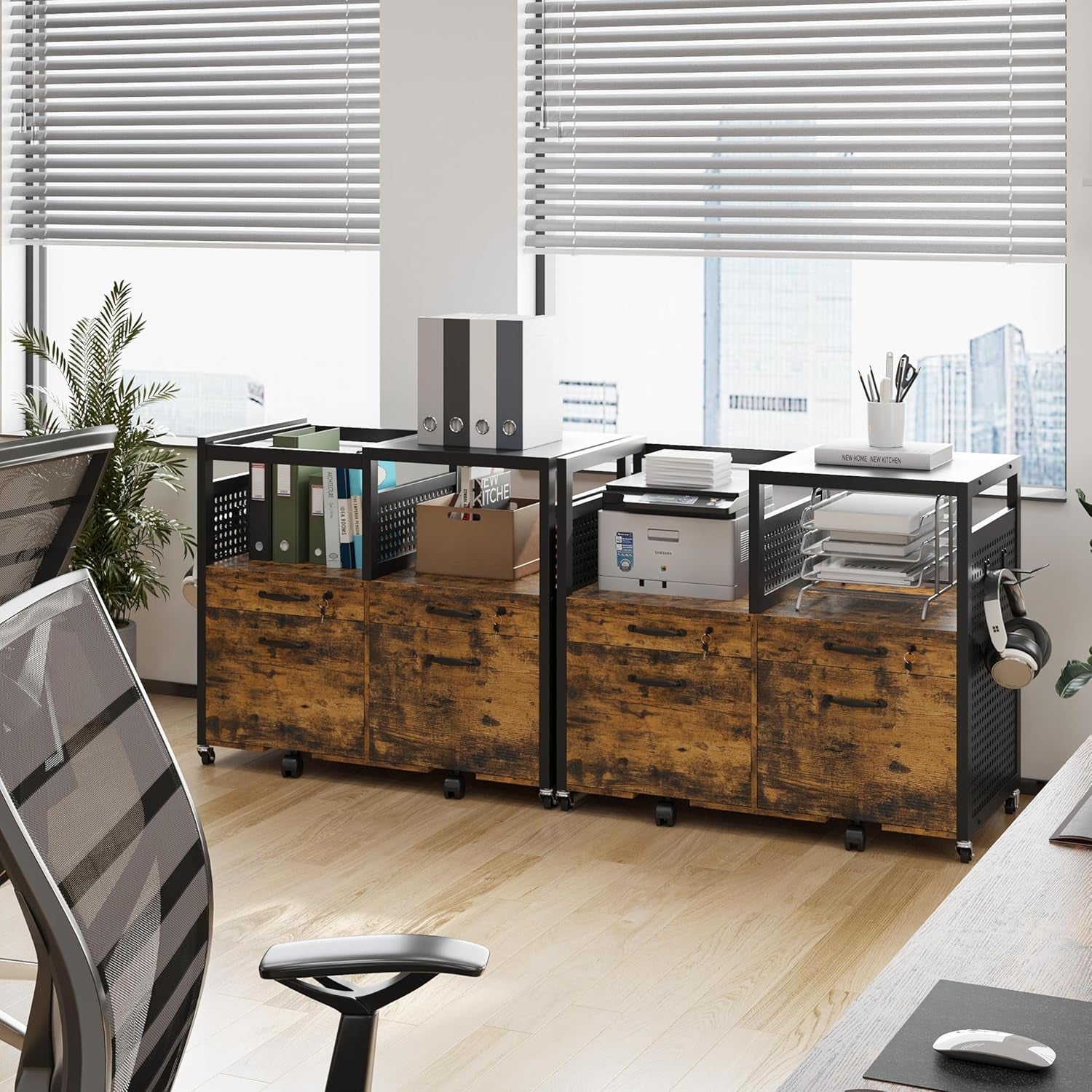 Transform your home office with a versatile lateral file cabinet that doubles as a compact printer stand. This rustic brown storage unit keeps your printer, files, and essentials neatly organized, so you can work with less clutter and more focus.