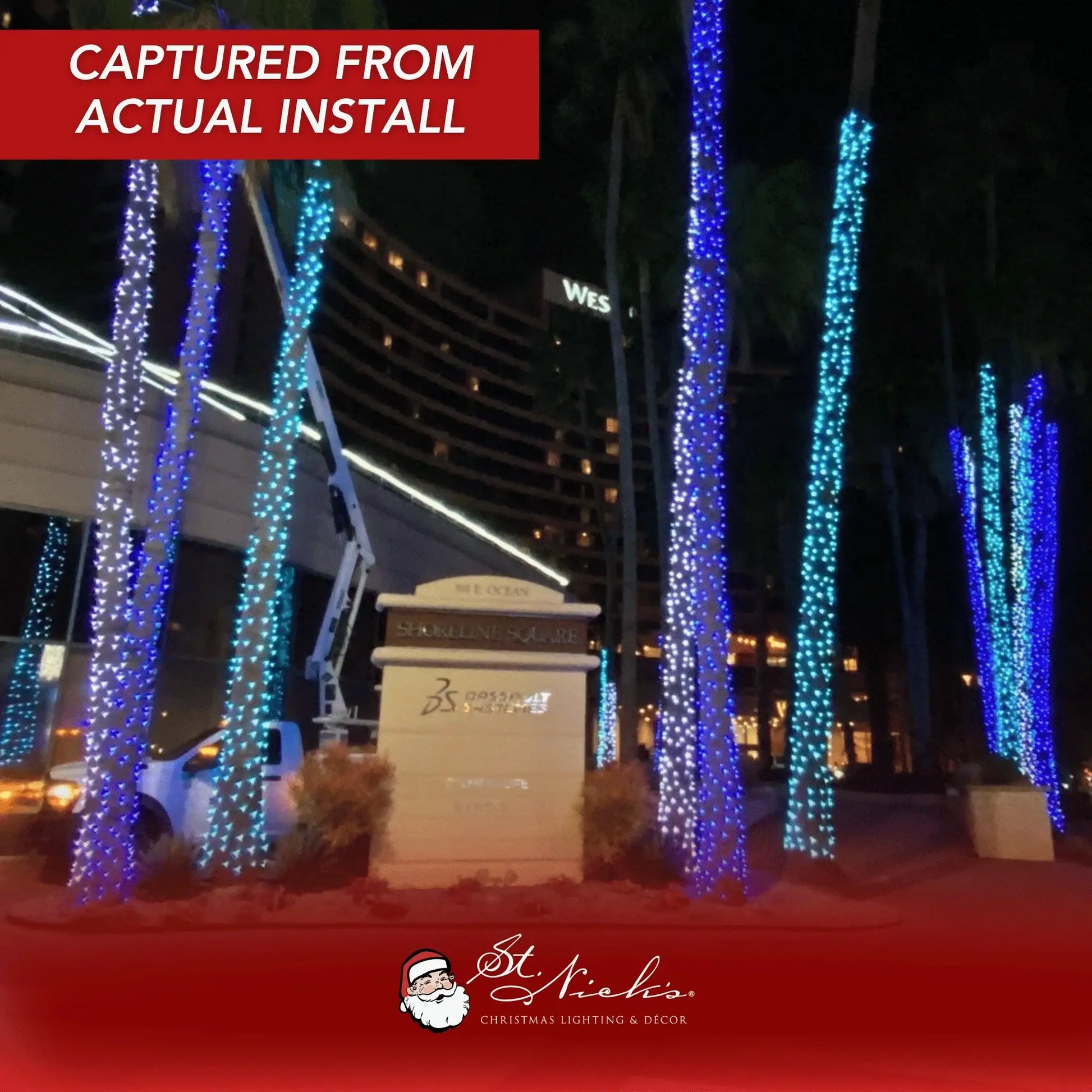 Light up your holiday season with our 5mm Aqua LED Mini Lights on Green Wire. Each strand has 50 lights spaced 6 inches apart. These energy-efficient lights are perfect for creating a warm and inviting holiday atmosphere.