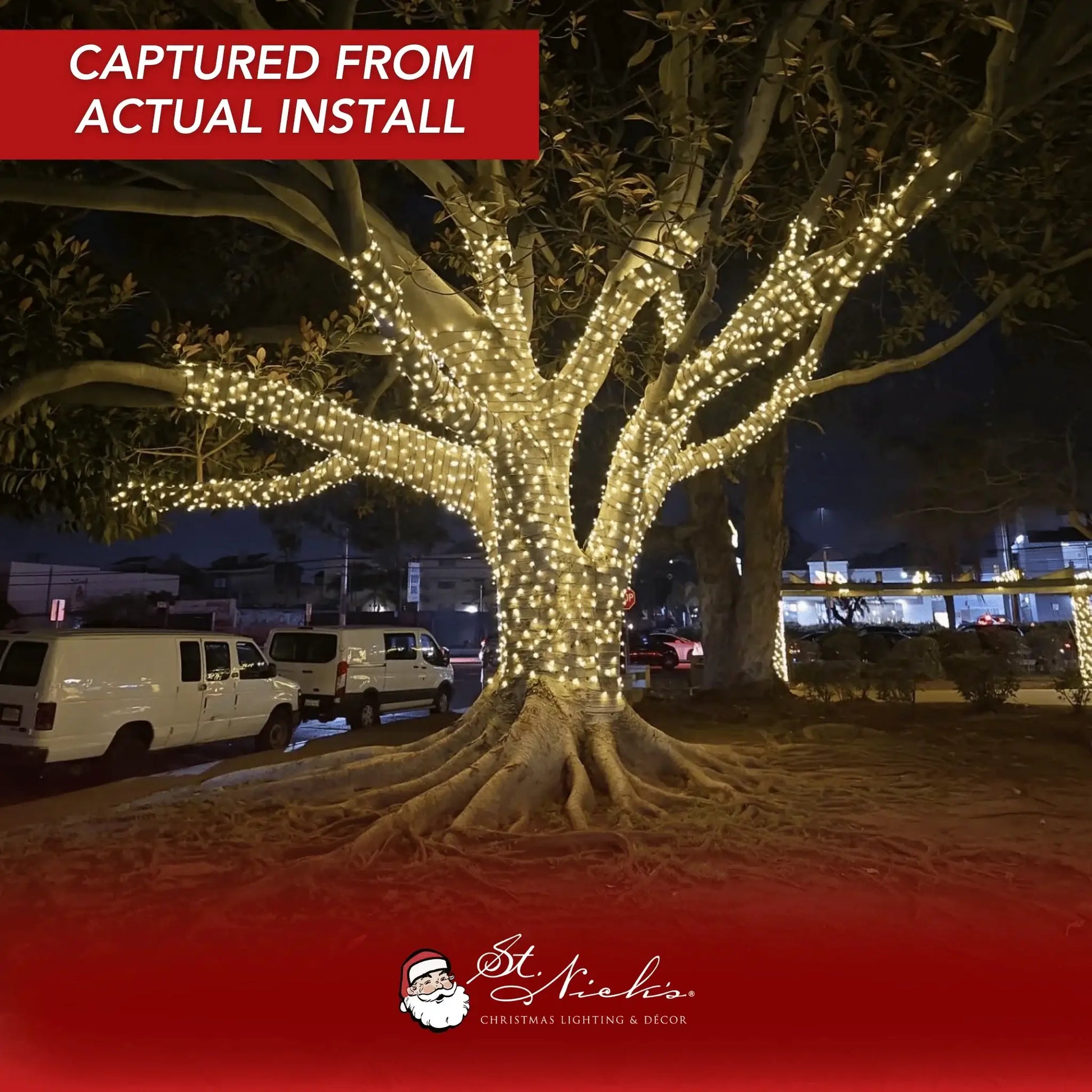 LED Mini Lights 5MM Warm White Static Green Wire 4" Spacing