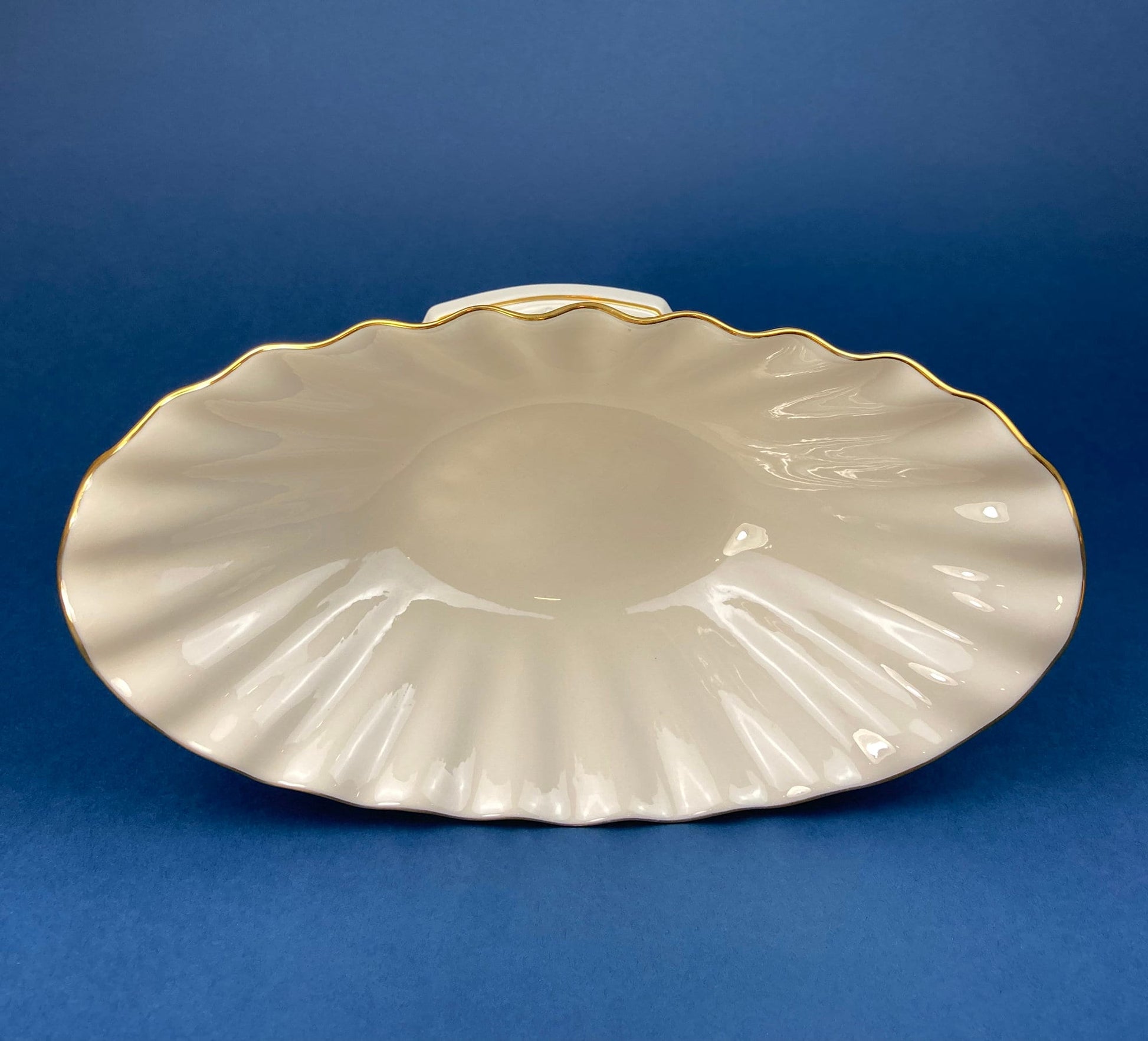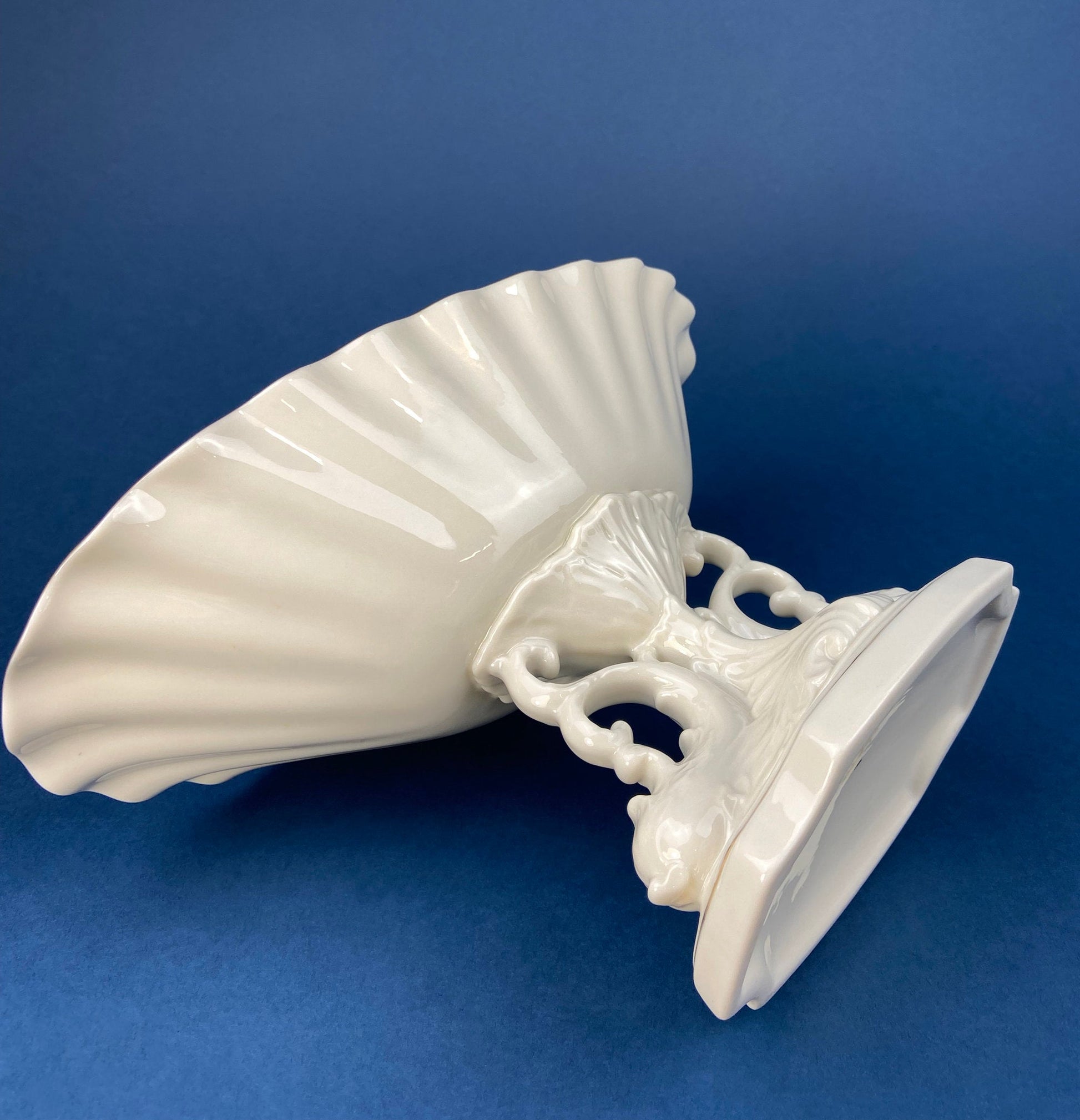 Lenox Pedestal Compote with Pair of Dolphins. Cream Colored Porcelain, Footed Fruit Stand or Serving Dish. Aquarius Table Centerpiece.
