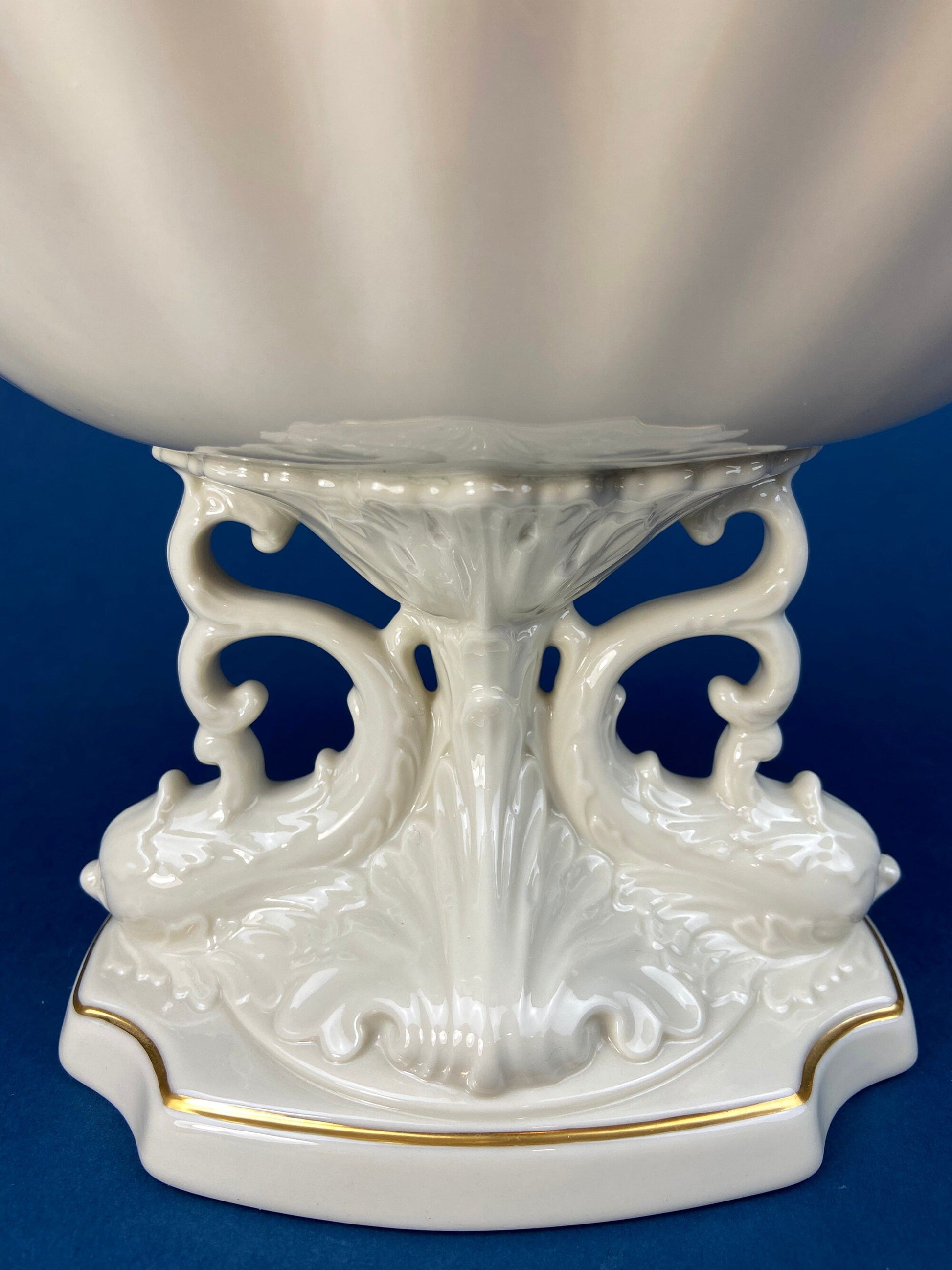 Lenox Pedestal Compote with Pair of Dolphins. Cream Colored Porcelain, Footed Fruit Stand, or Serving Dish. Aquarius Table Centerpiece. Excellent Condition.