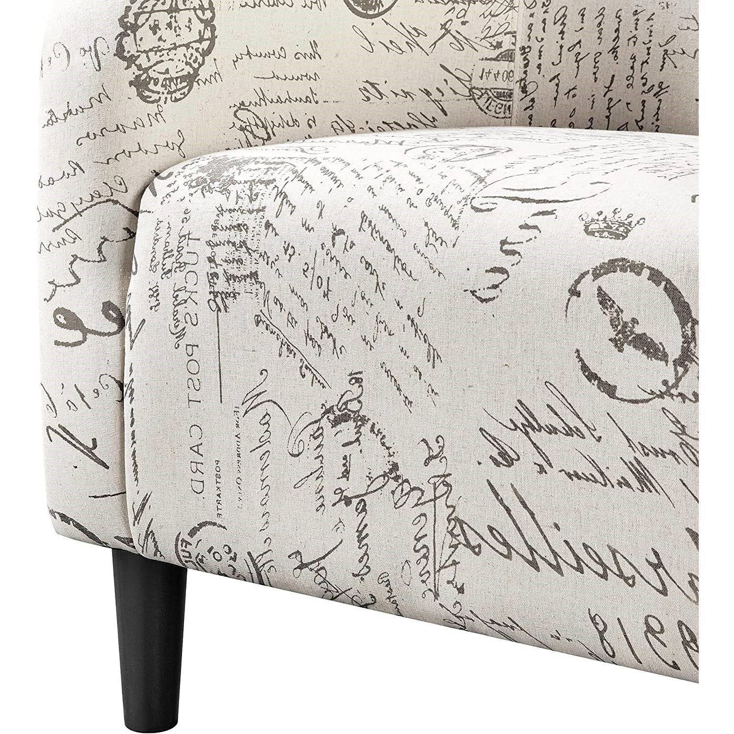 Letter Print French Upholstered Barrel Chair and Ottoman Set