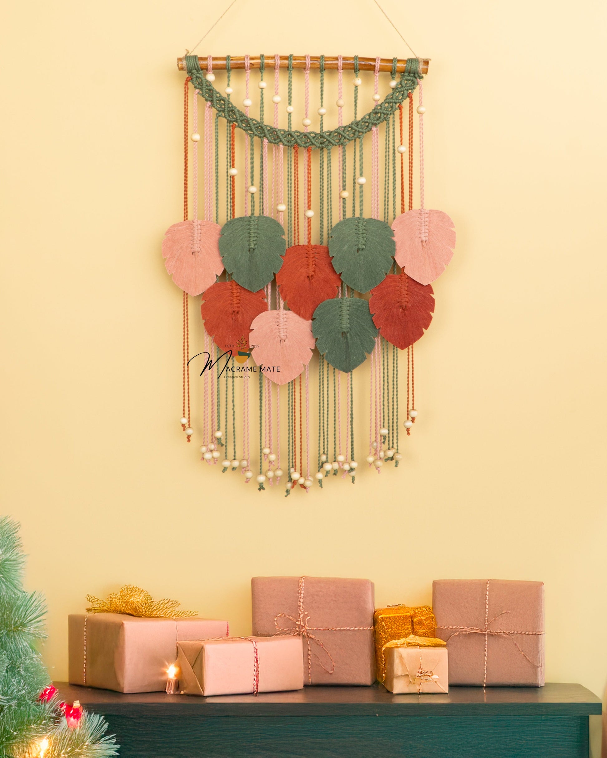 Add organic texture and free-spirited charm to your space with our Levia Boho Macrame Leaf Hangings. These beautifully handcrafted macramé leaves feature intricate knotwork in natural earth tones, creating versatile bohemian decor perfect for walls, plant hangers, or shelf styling. Each piece is made from premium cotton rope for an artisanal touch that brings warmth to any room.