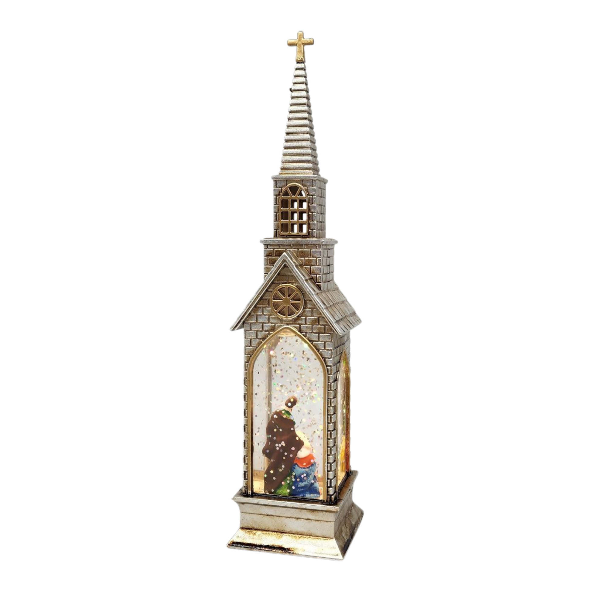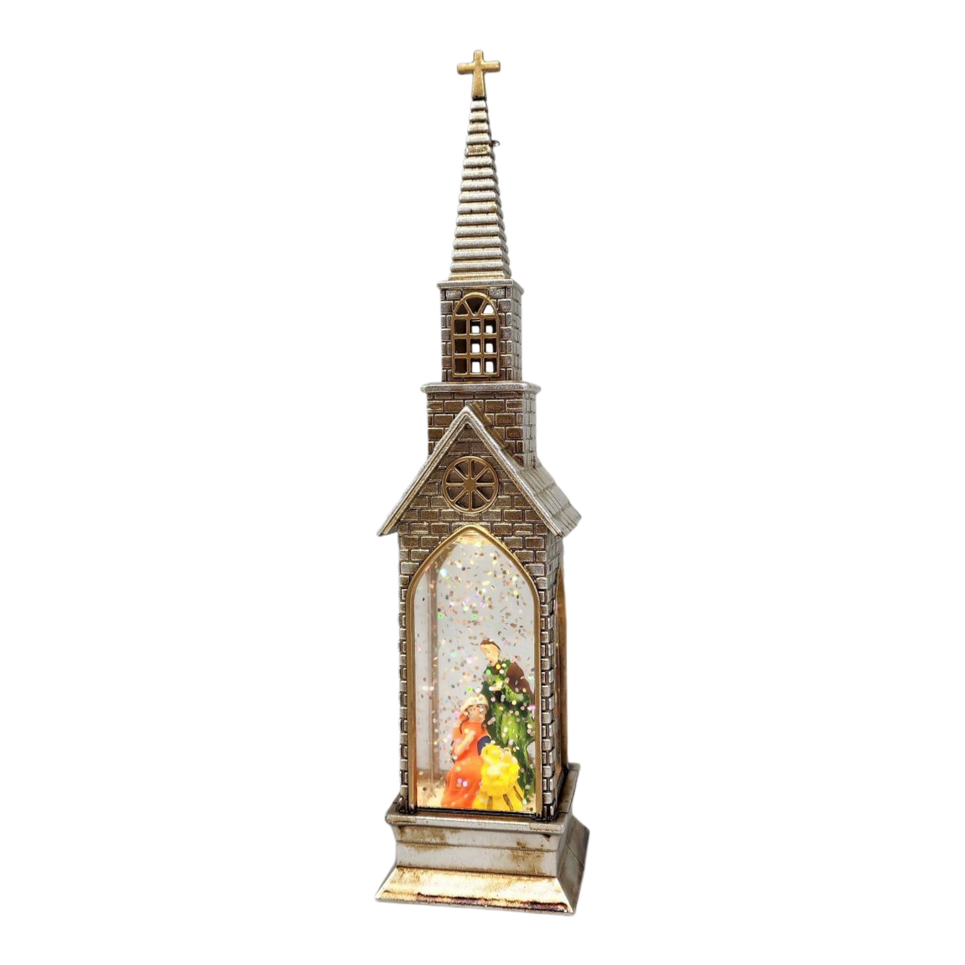Enhance your holiday decor with the enchanting Vintage Christmas Church Lantern! Standing at 8.74 inches tall, this delightful lantern features a beautifully crafted church design, complete with a charming steeple and intricate brickwork that evokes a warm, nostalgic feel. Inside, a heartwarming scene of families celebrating the season brings the magic of the holidays to life, surrounded by a gentle snowfall that creates a mesmerizing atmosphere.