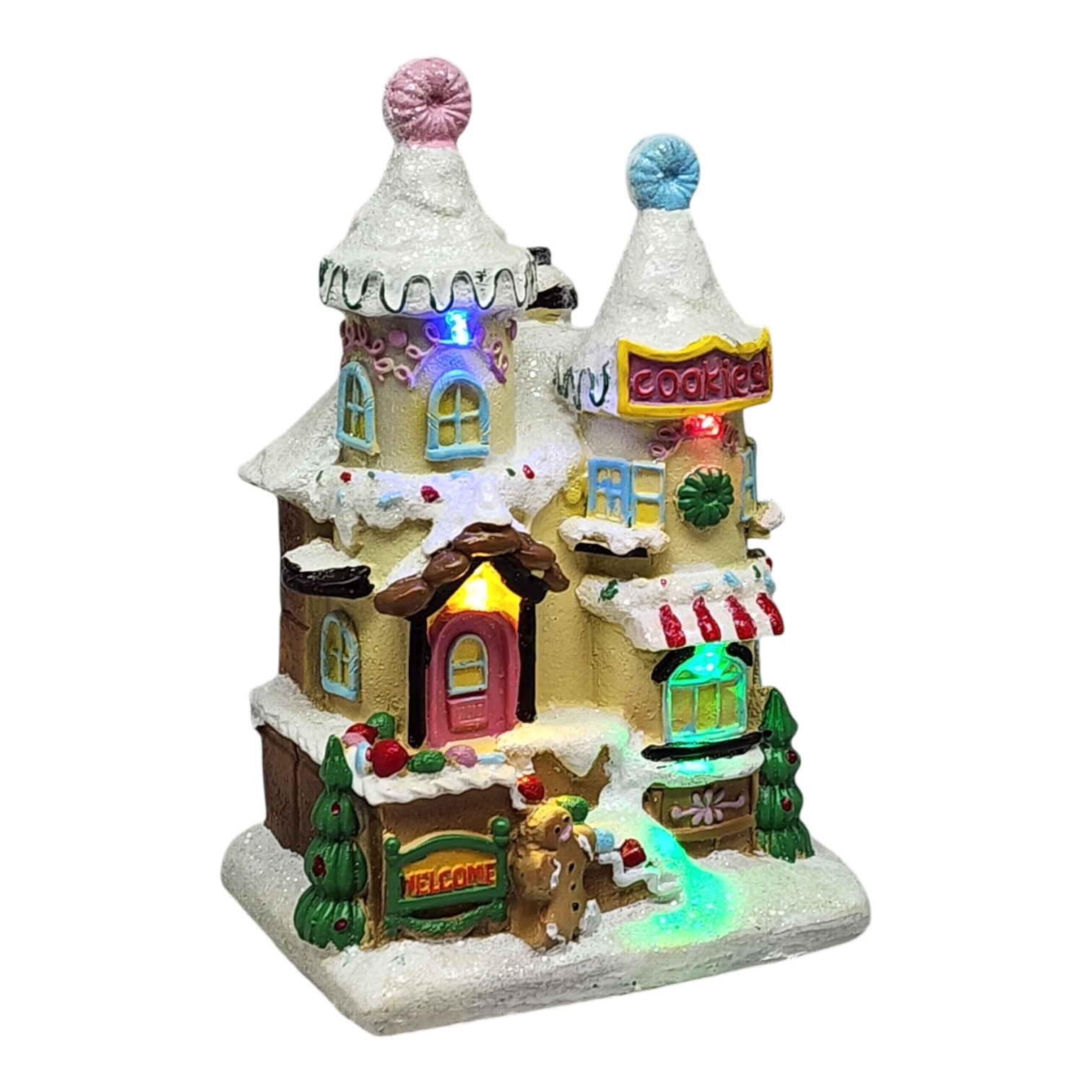 Bring the joy of the holiday season to life with this charming lighted ice cream shop a delightful centerpiece that captures the spirit of Christmas in a fun and whimsical way. Standing just over 6 inches tall this enchanting piece features colorful lights a welcoming door and playful details like a friendly gingerbread figure - perfect for sparking smiles and holiday cheer. The intricate design shows off a festive rooftop and candy cane accents making it a joyful addition to your holiday decorations.