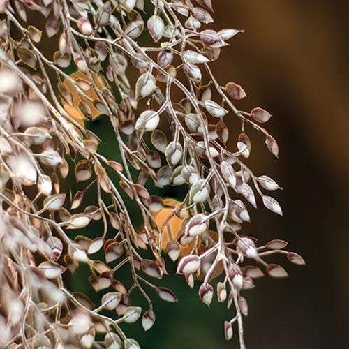 Little Luna Leaves Hanging Bush, 24" has been painted with a wash of white paint that has pooled in some of the leaves, creating a dimensional look. This floral bush measures 24" long.