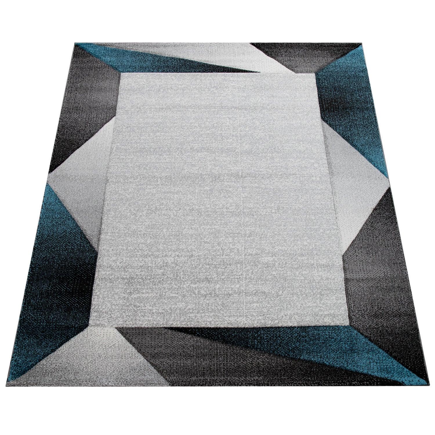 Living Room Rug Madeira Bordered with Geometric Pattern - Grey Blue