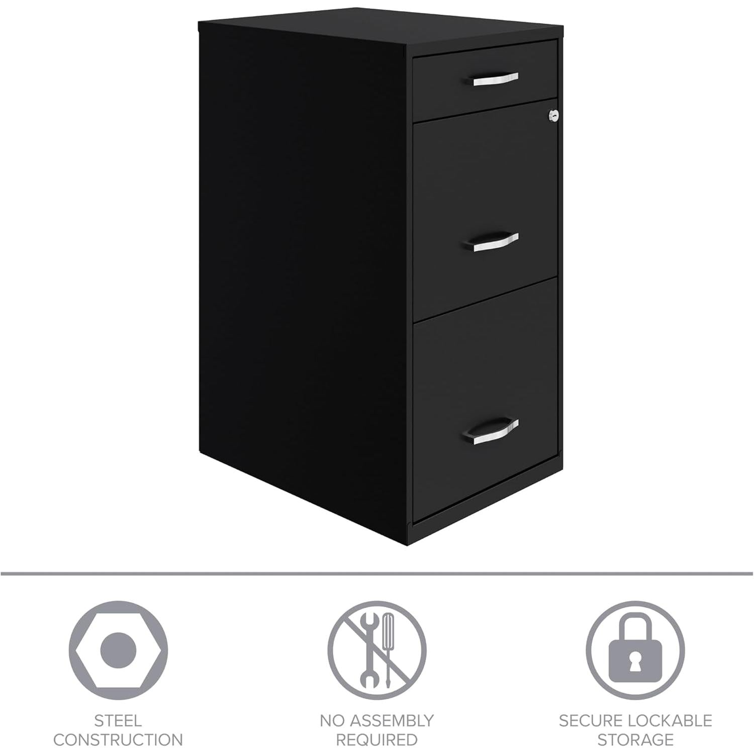 Secure, space-saving storage for your home office—this locking 3-drawer steel file cabinet keeps important documents protected while reclaiming desk space.