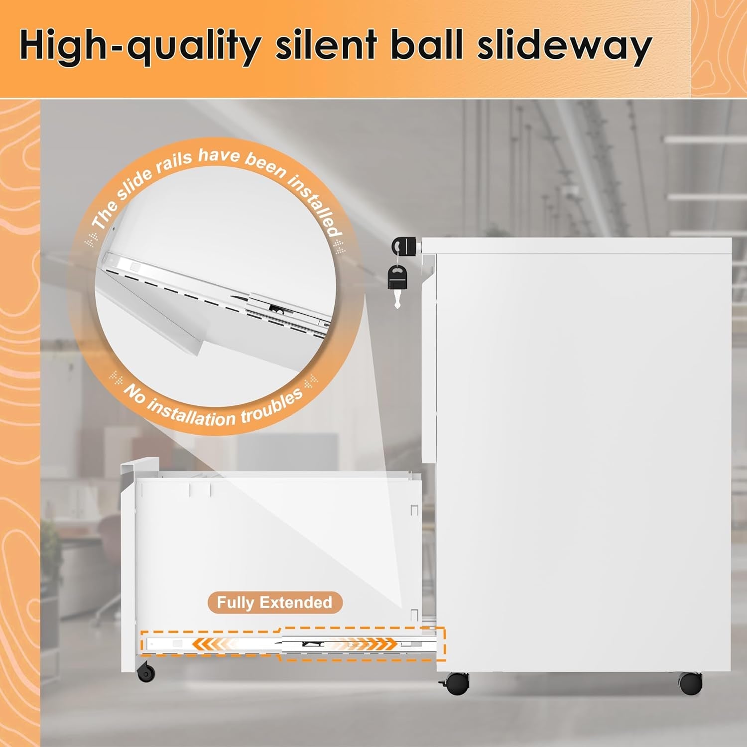 This locking mechanism protects sensitive documents with a single lock and two keys, while the three-drawer design provides ample space for letter, legal, and A4-sized files. Take control of your filing system with adjustable hanging bars to customize storage and keep folders neatly in place. Its mobile design means you can reposition storage as your workflow evolves, without sacrificing security or accessibility.
