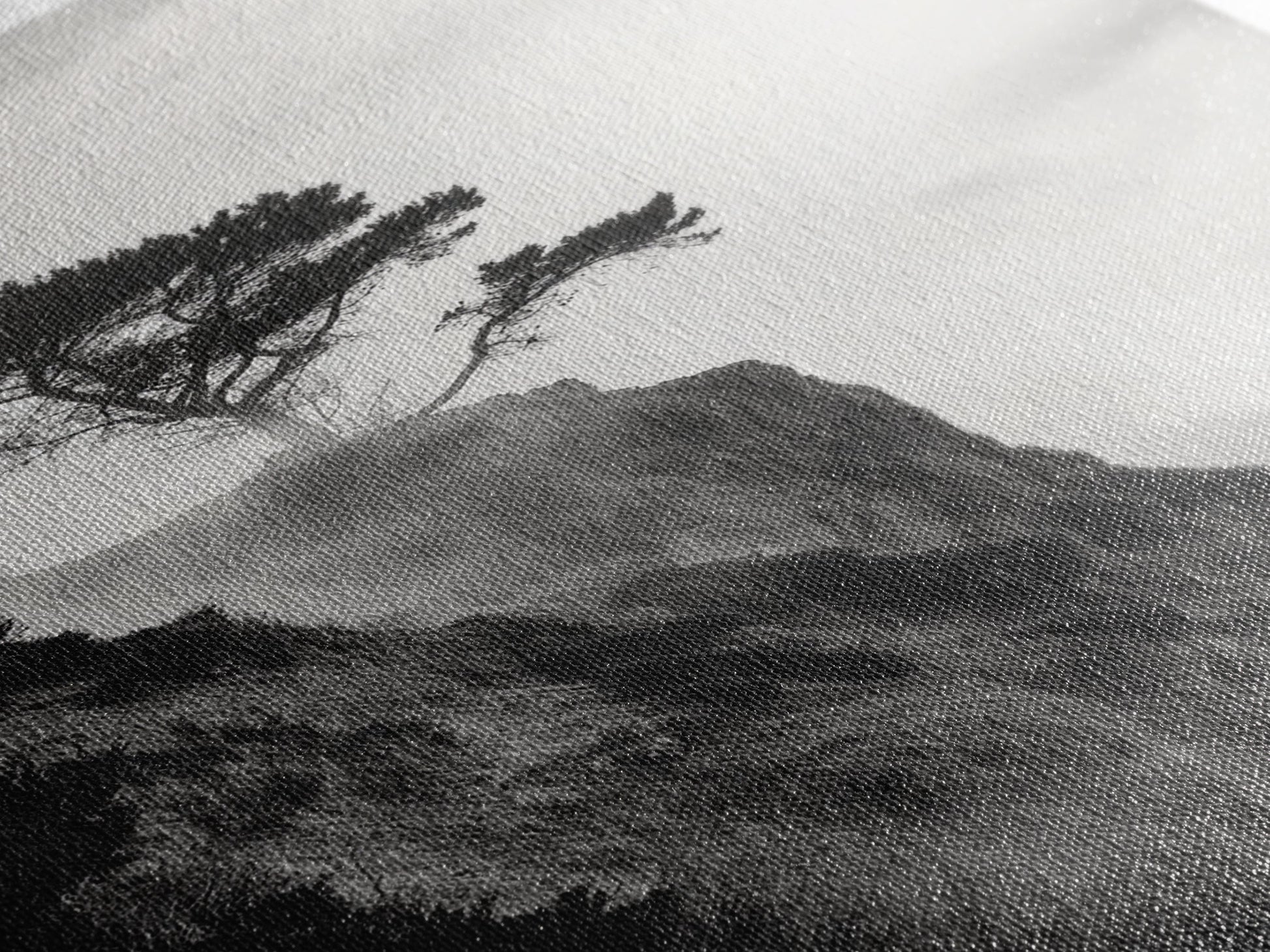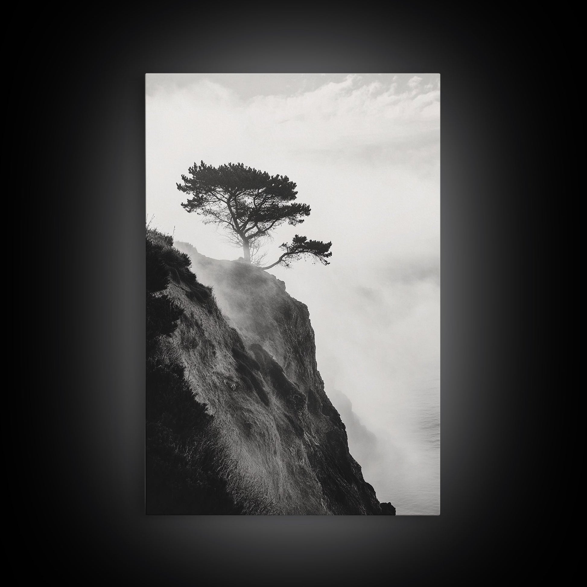 Lone Cliff Tree, Foggy Landscape, Nature Wall Decor, Framed Canvas Print, Minimalist Tree Art, Tranquil Living Room Wall Art