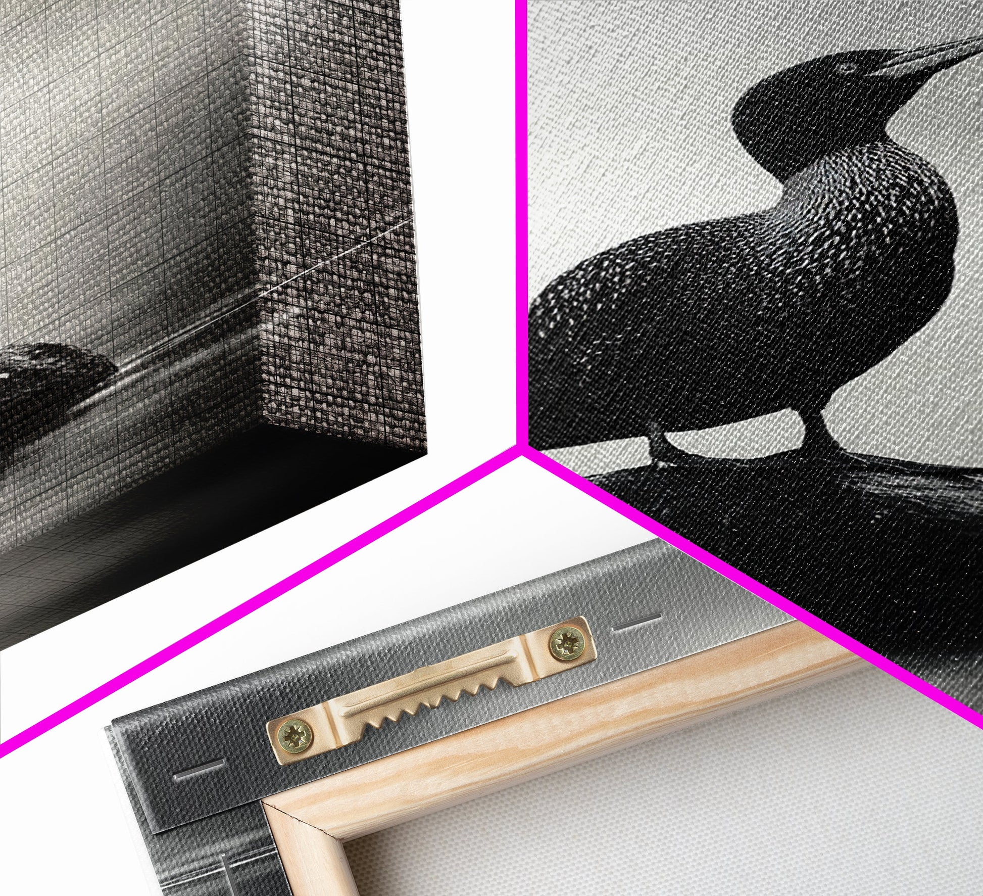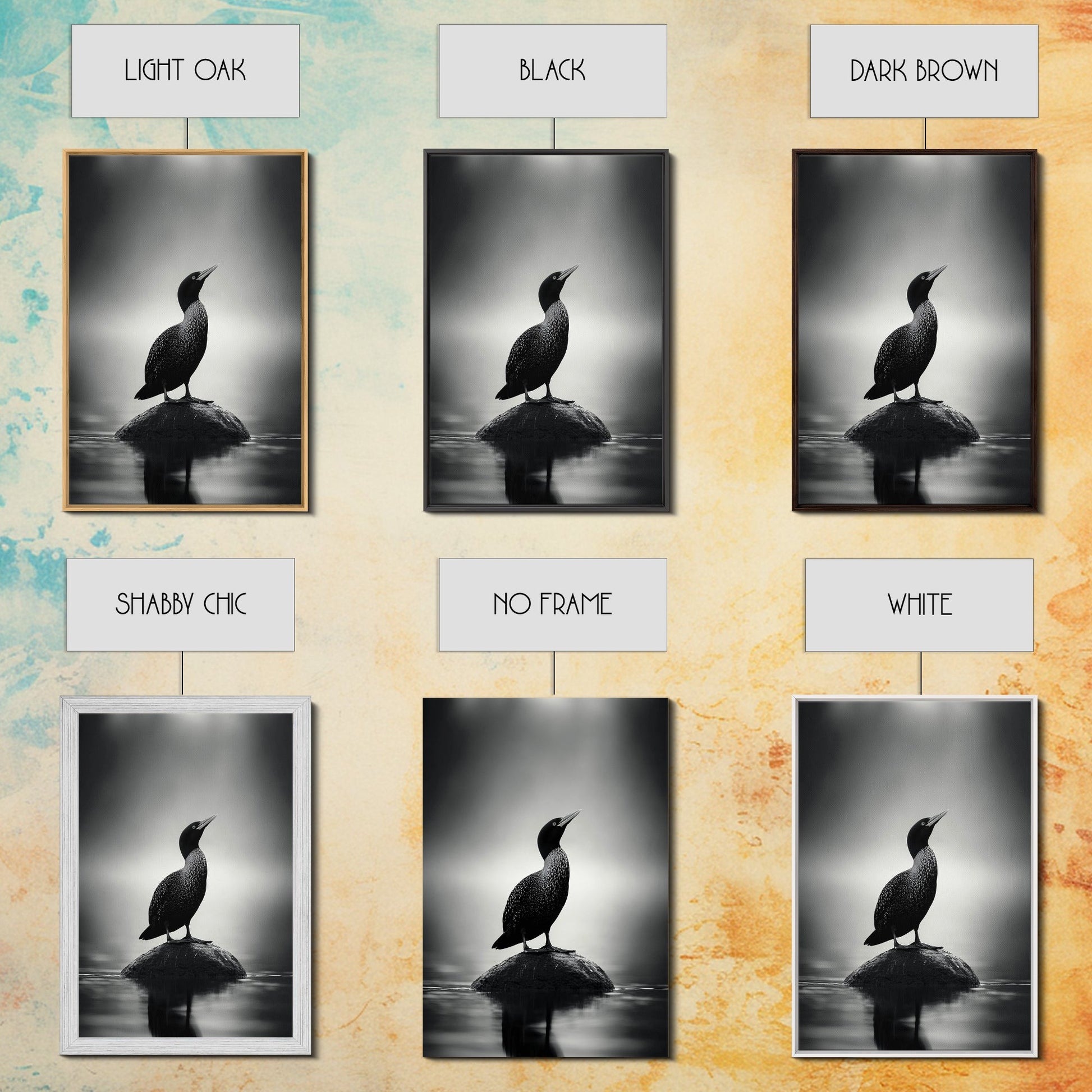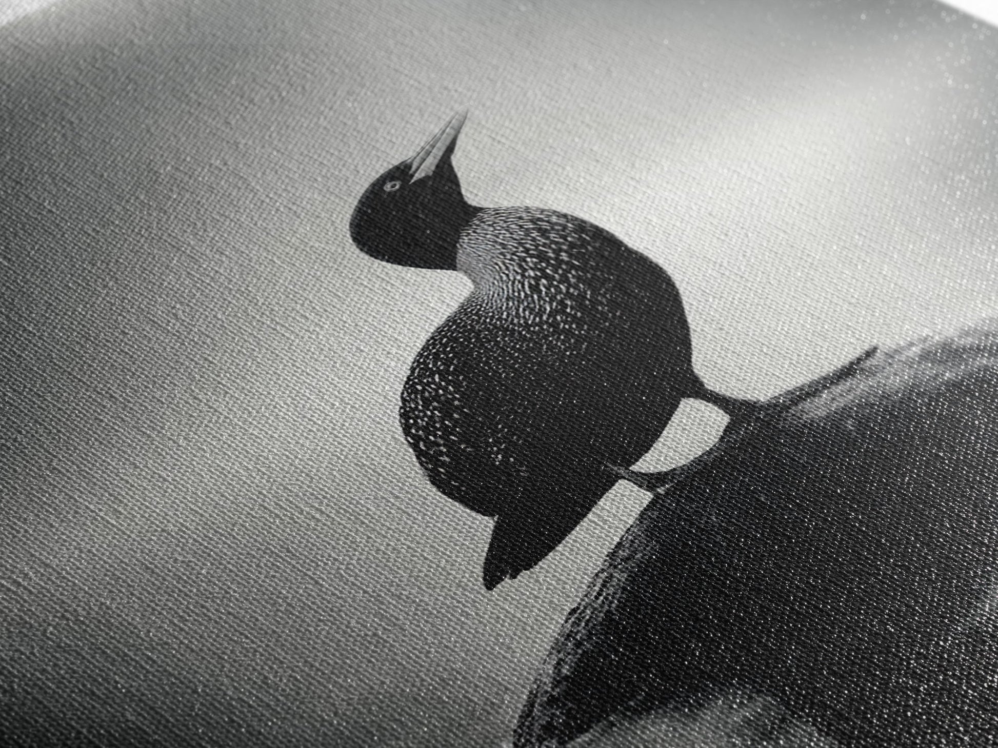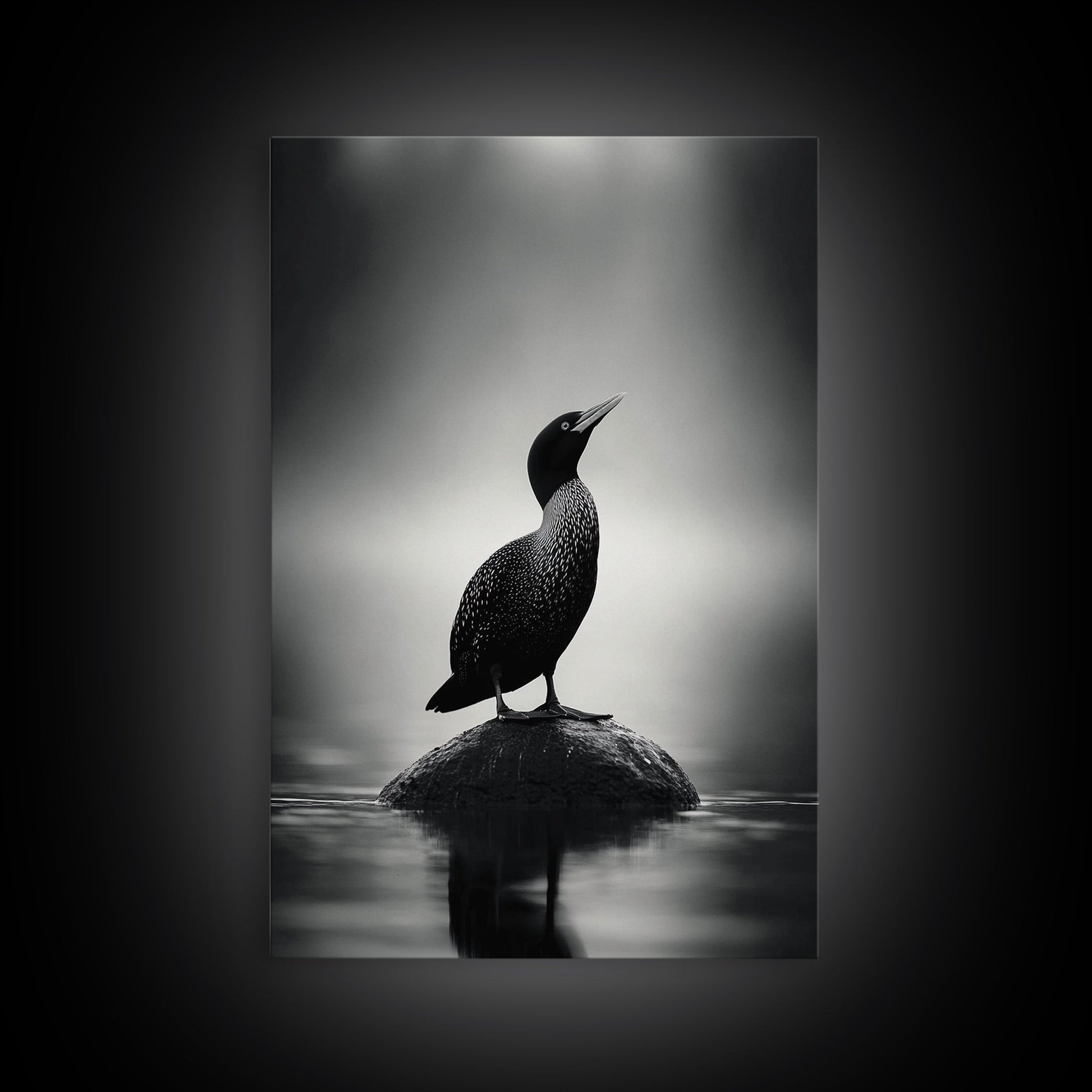Loon on Rock, Morning Mist, Water Bird Focus, Canvas Print, Minimalist Animal Art, Office Decor, Tranquil Lake Scene Wall Art
