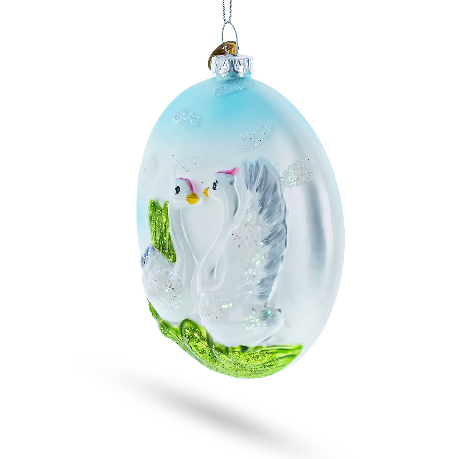 Loving Swans Couple Glass Christmas Ornament