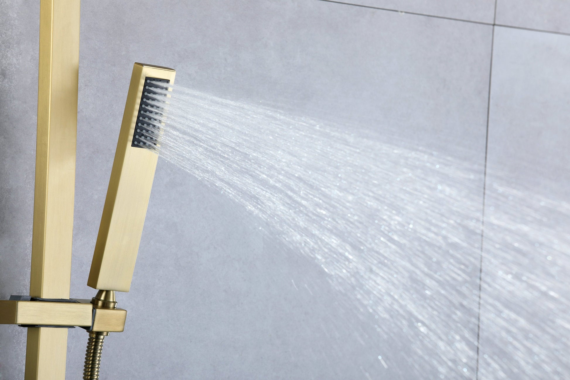 In a non-concealed style, this shower set is a statement piece that is not just functional but also adds to the aesthetic appeal of your bathroom. Upgrade your shower experience with our Brushed Gold Wall-Mounted Thermostatic Rain Shower Set.