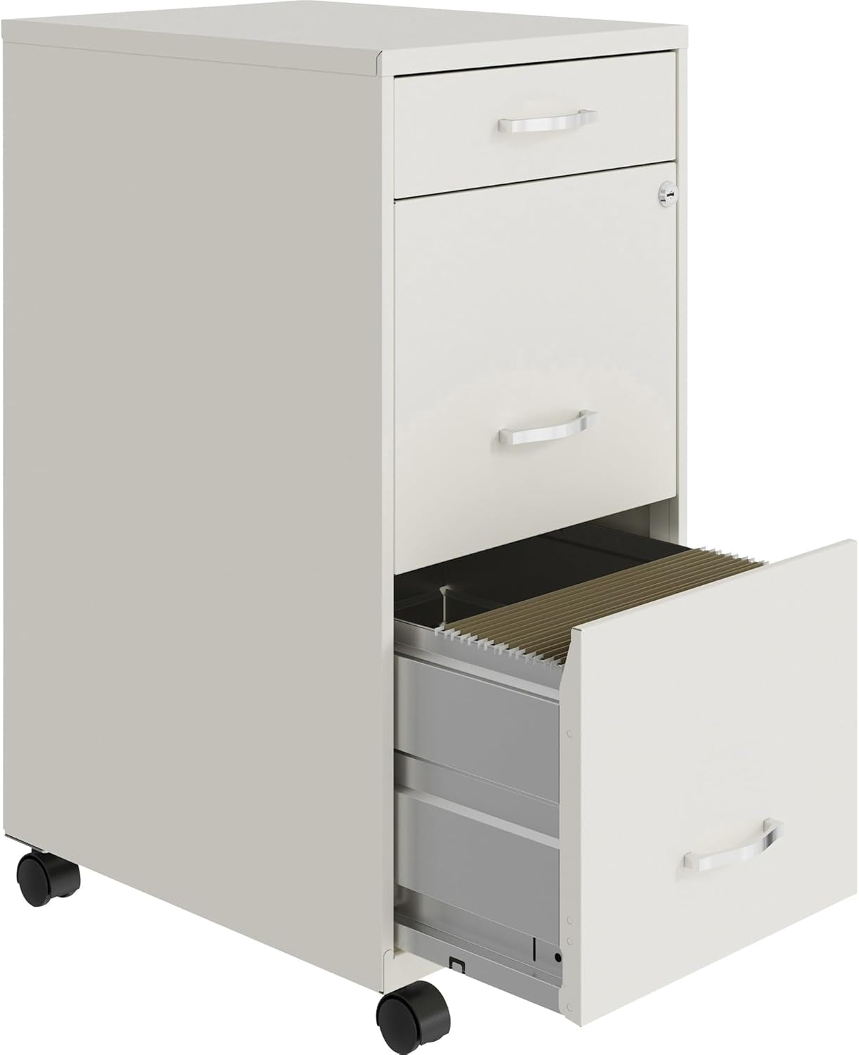 Whether in a home office or a professional workspace, this box/file/file mobile white file cabinet delivers practical storage that reduces clutter, speeds document retrieval, and enhances a calm, productive environment.