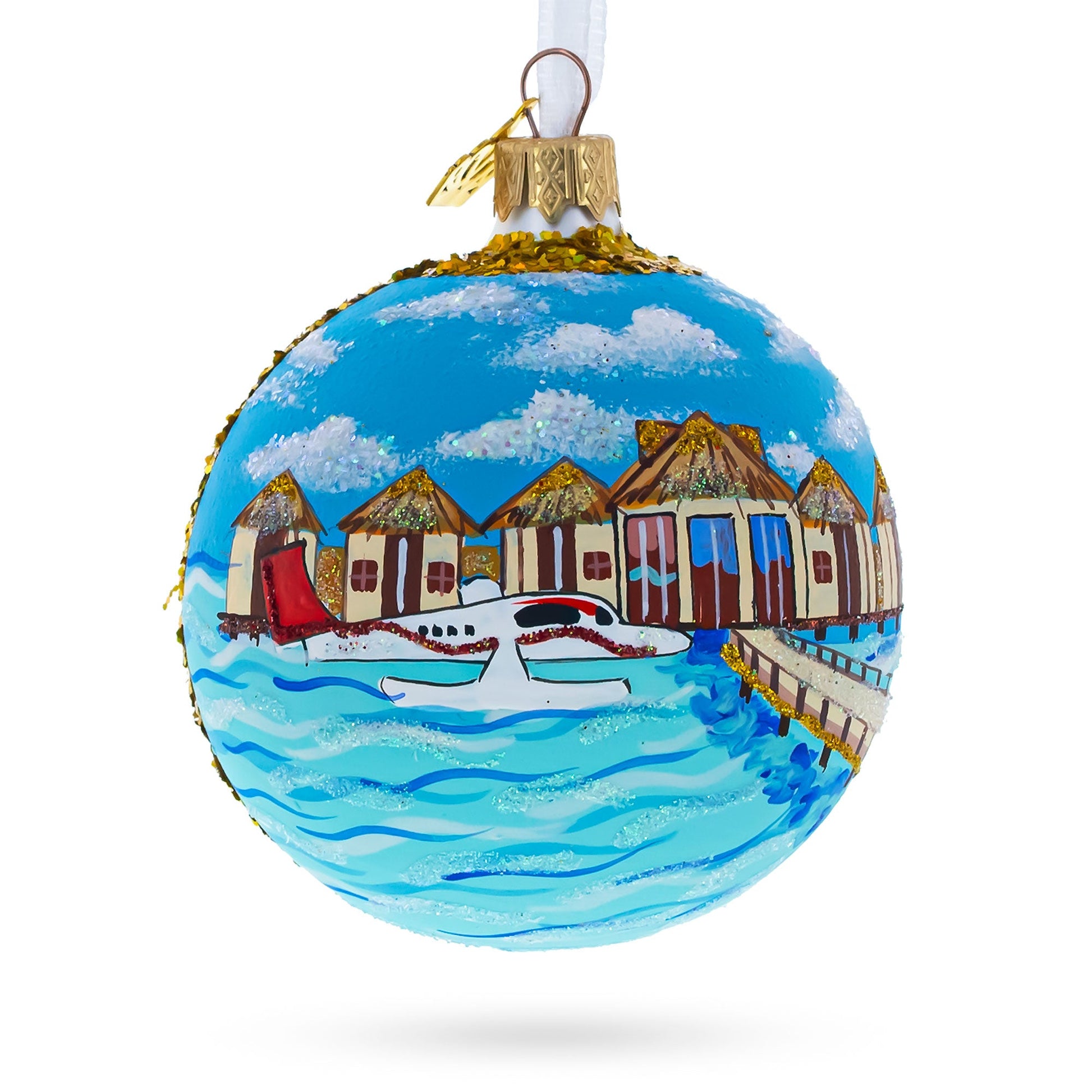 Maldives Resort Glass Ball Christmas Ornament 3.25 Inches