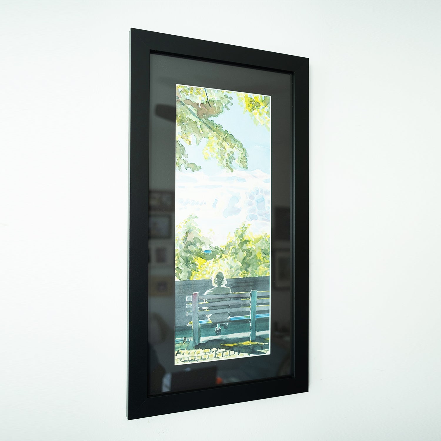 Man on Bench Watching Sunset, Linden Terrace, Fort Tryon, Watercolor, Hudson River