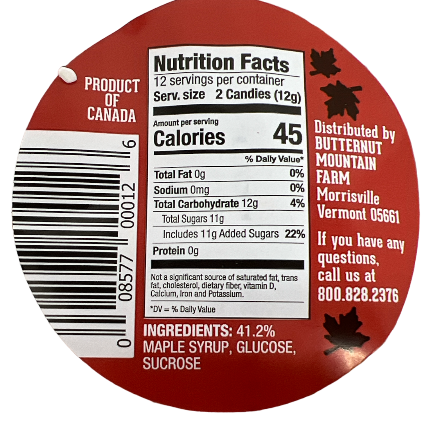 Made with over 40% pure maple syrup – as much maple syrup as you’ll ever find in a hard maple candy.