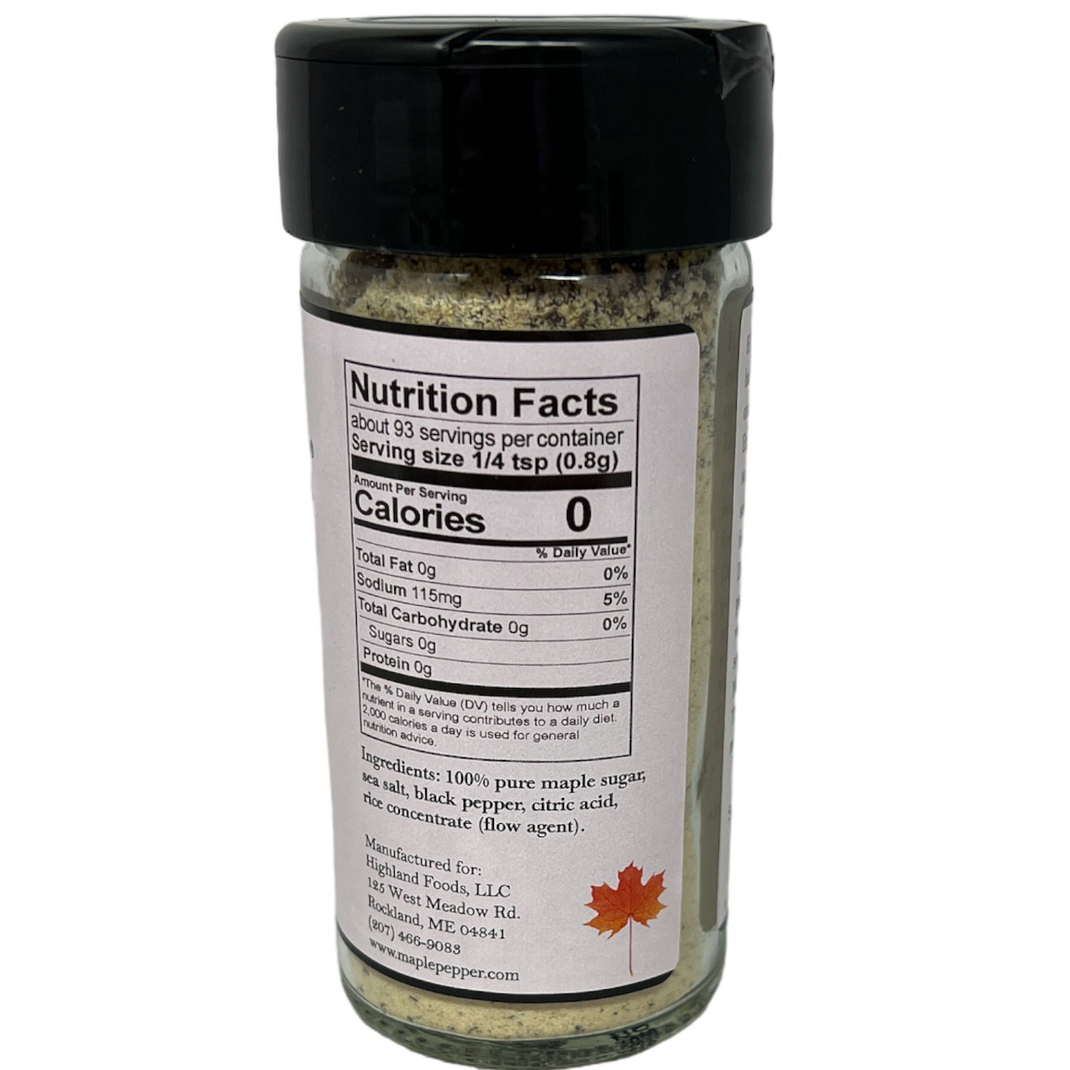 Pure, simple ingredients. Maple Pepper Seasoning made with pure maple sugar. 2.6 oz