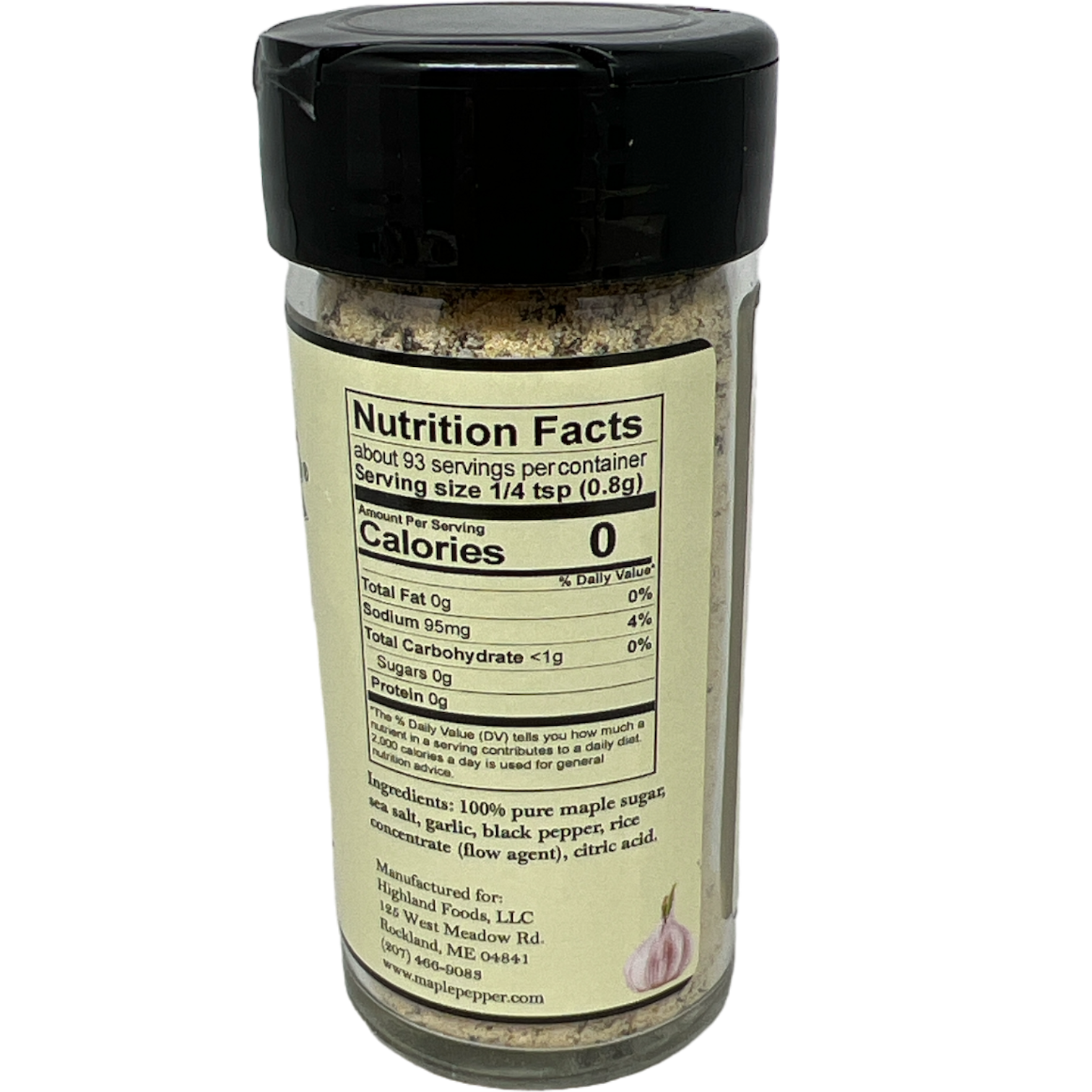 Pure, simple ingredients. Maple Pepper Garlic Seasoning made with pure maple sugar. 2.6 oz