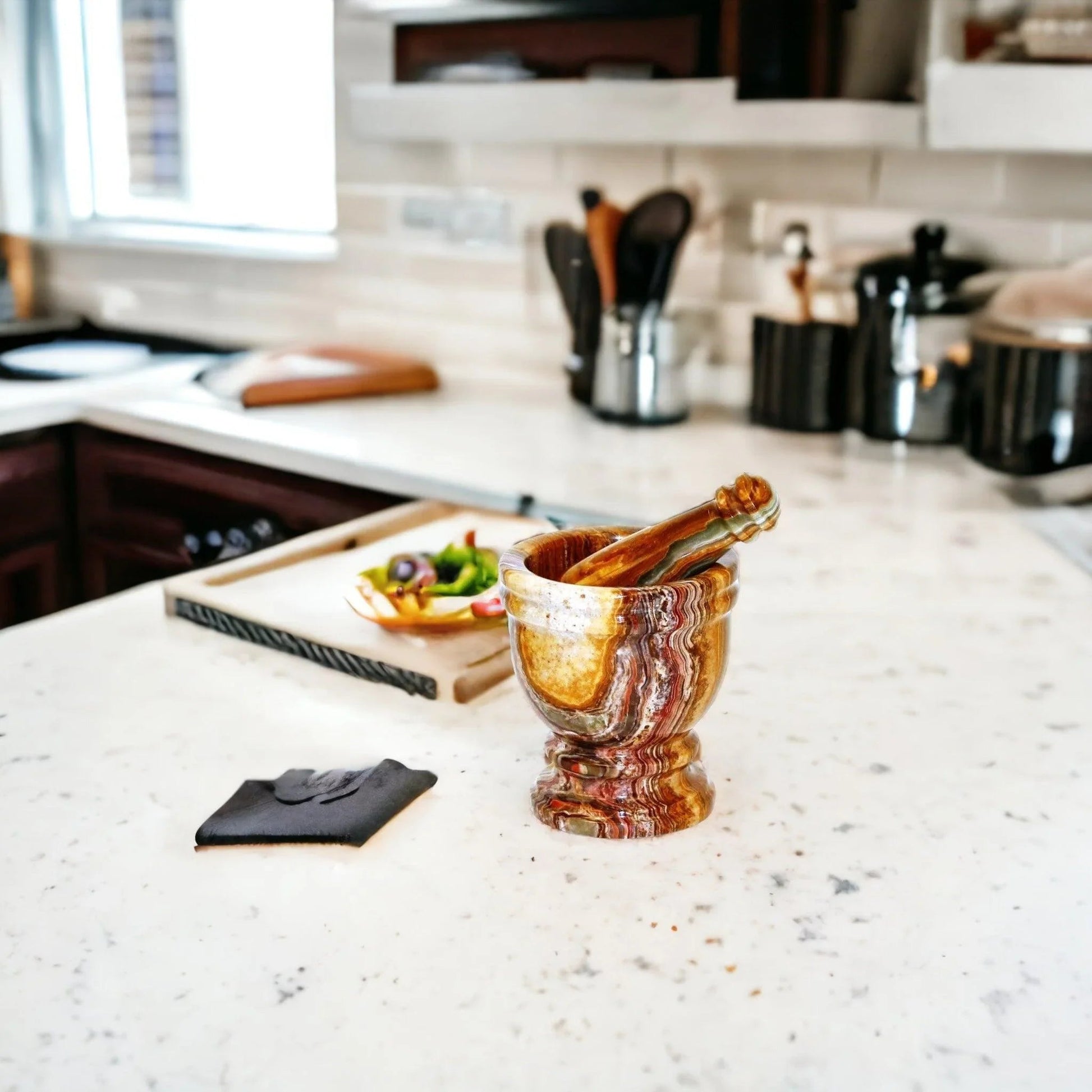 Marble Mortar and Pestle Crafted from Multi Brown Onyx