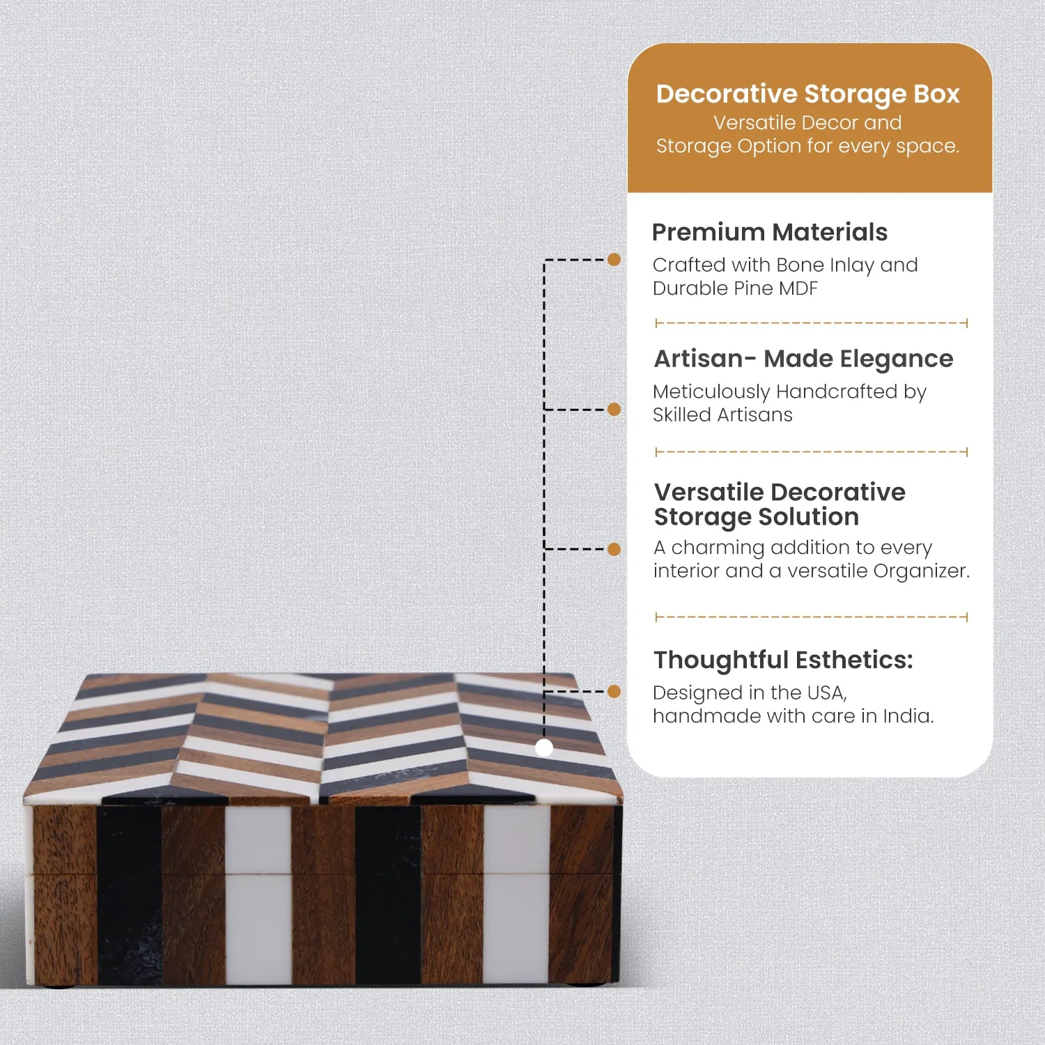 Artisan Crafted Elegance: Each box is Handmade by skilled Indian Artisans using Natural Wood, Smooth Resin, and carefully Aligned Geometric Marquetry. The bold Design reflects Boho Home Decor Trends while celebrating Traditional Craftsmanship.