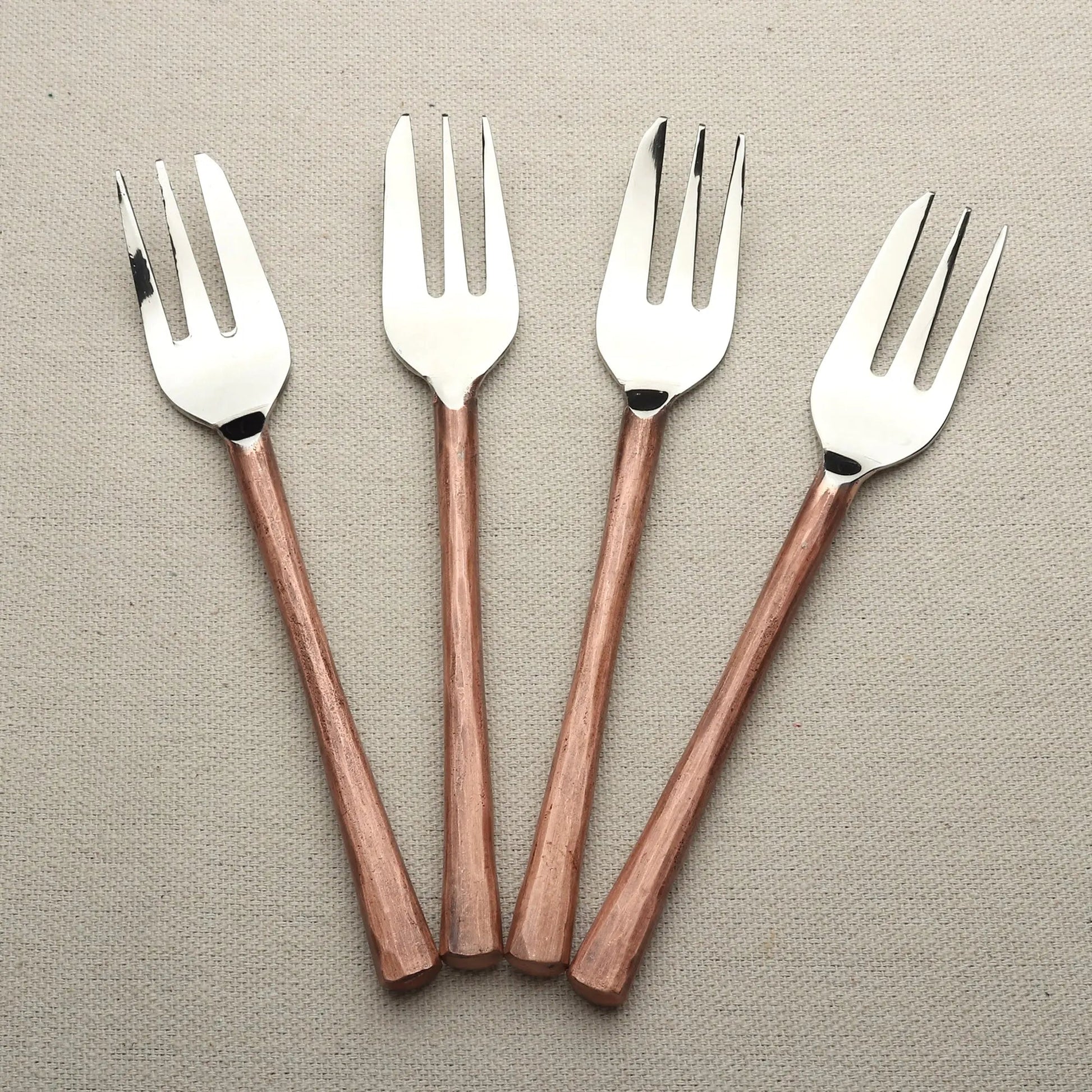 Our Medicki Antique Copper 4 Pc. Dessert/Pastry Fork Set brings a chic updated look to your table setting. Elegantly beveled handles go from slim to wide for an eye-pleasing design that fits perfectly in your hand. Mid-sized utensils add to the universal appeal of this flatware which is equally comfortable in everyday or formal settings.