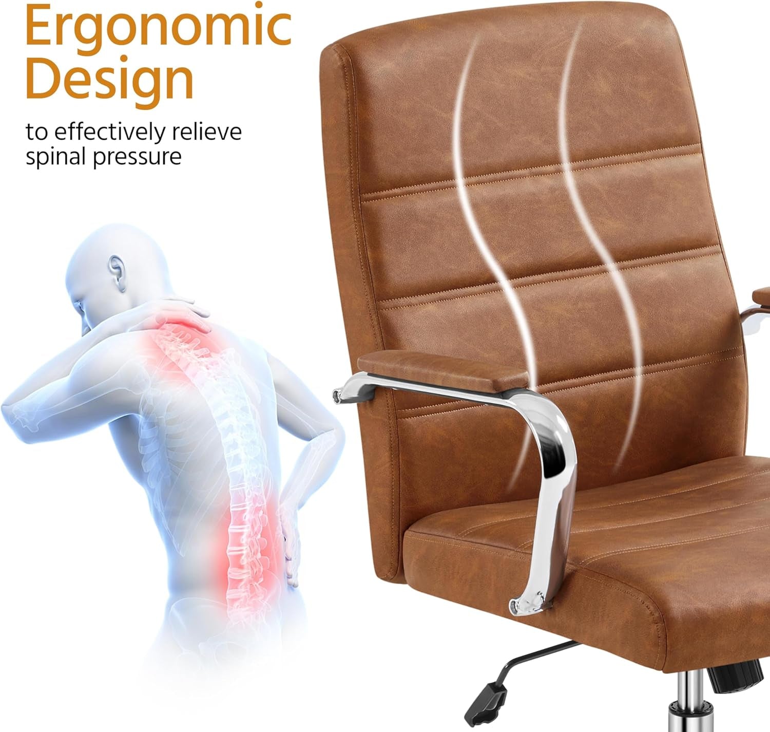 Boost your day with comfort, control, and a touch of retro-chic. This Mid-Back Office Chair with Arms delivers dependable support, smooth adjustability, and a stylish brown PU leather look that fits both professional desks and vanity setups.