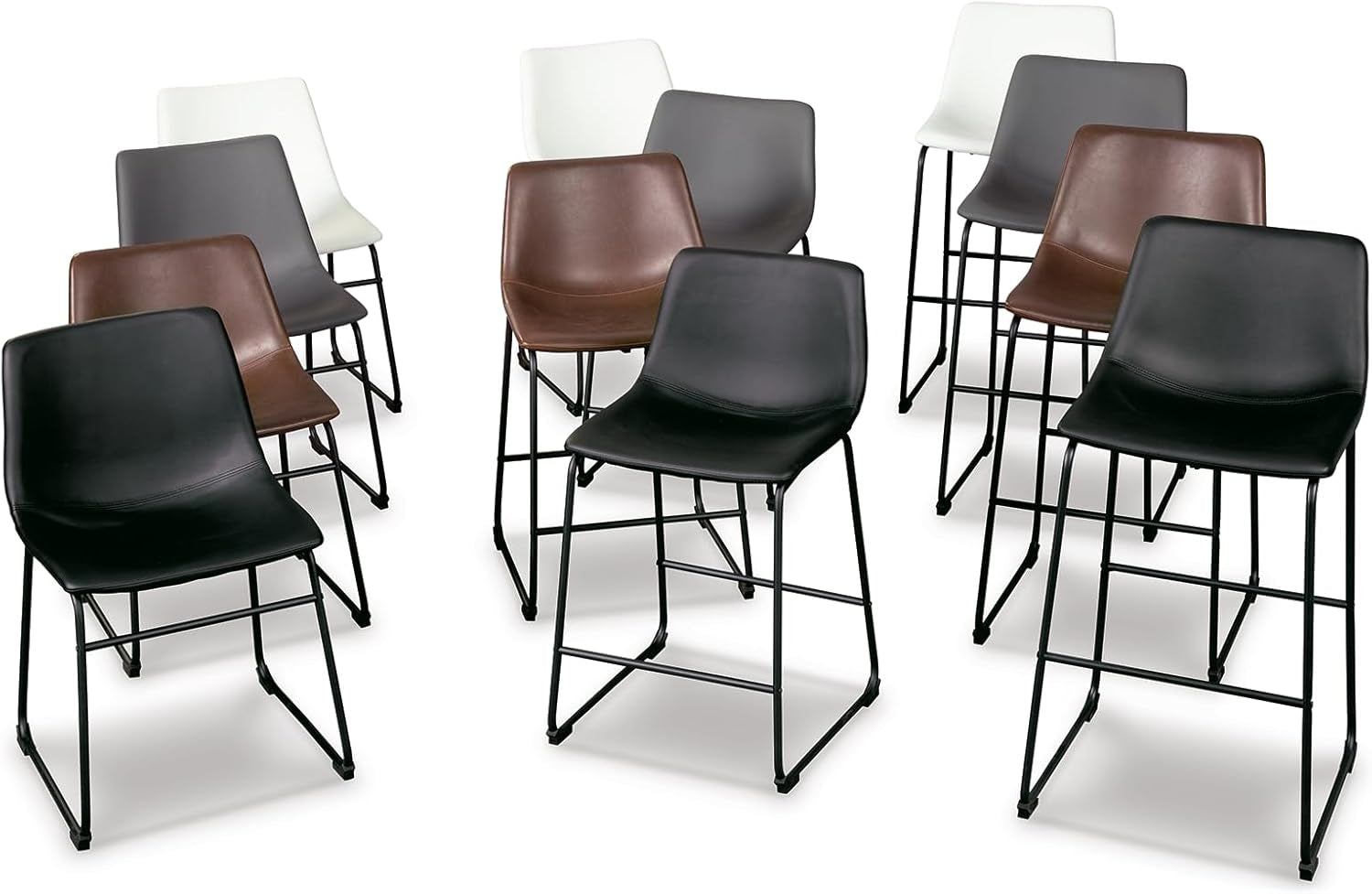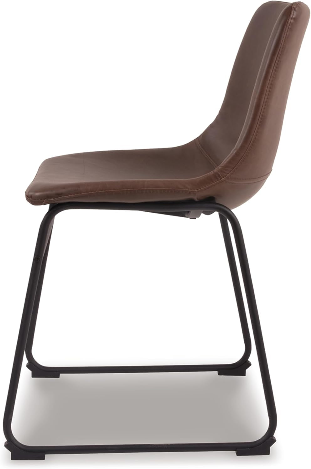 Honed for comfort and built to last, each chair features a contoured bucket seat on a slim tubular metal base and is upholstered in durable faux leather with a vintage-inspired tone.