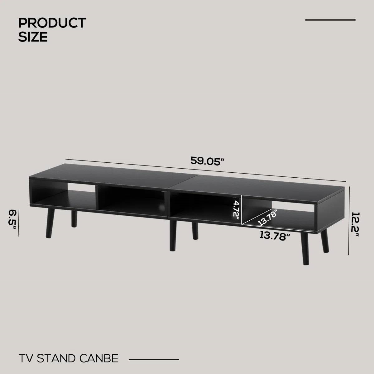 - Mid-Century Modern Style TV Stand in Black Wood Finish - for TVs up to 65-inch