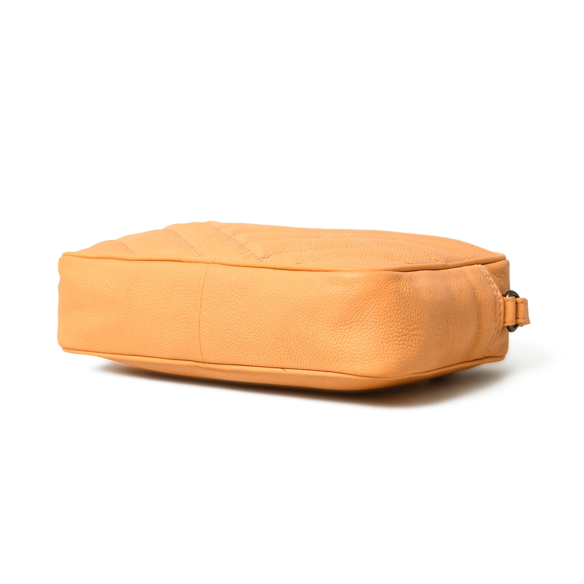 Quilted Elegance: Ace your style game with a beige leather sling bag adorned with a quilted texture of parallel lines, showcasing meticulous hand-stitching for a luxurious appeal.