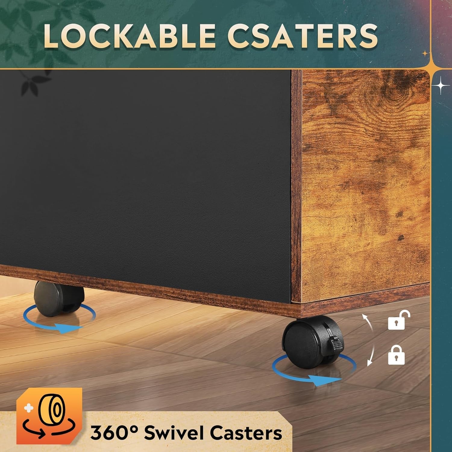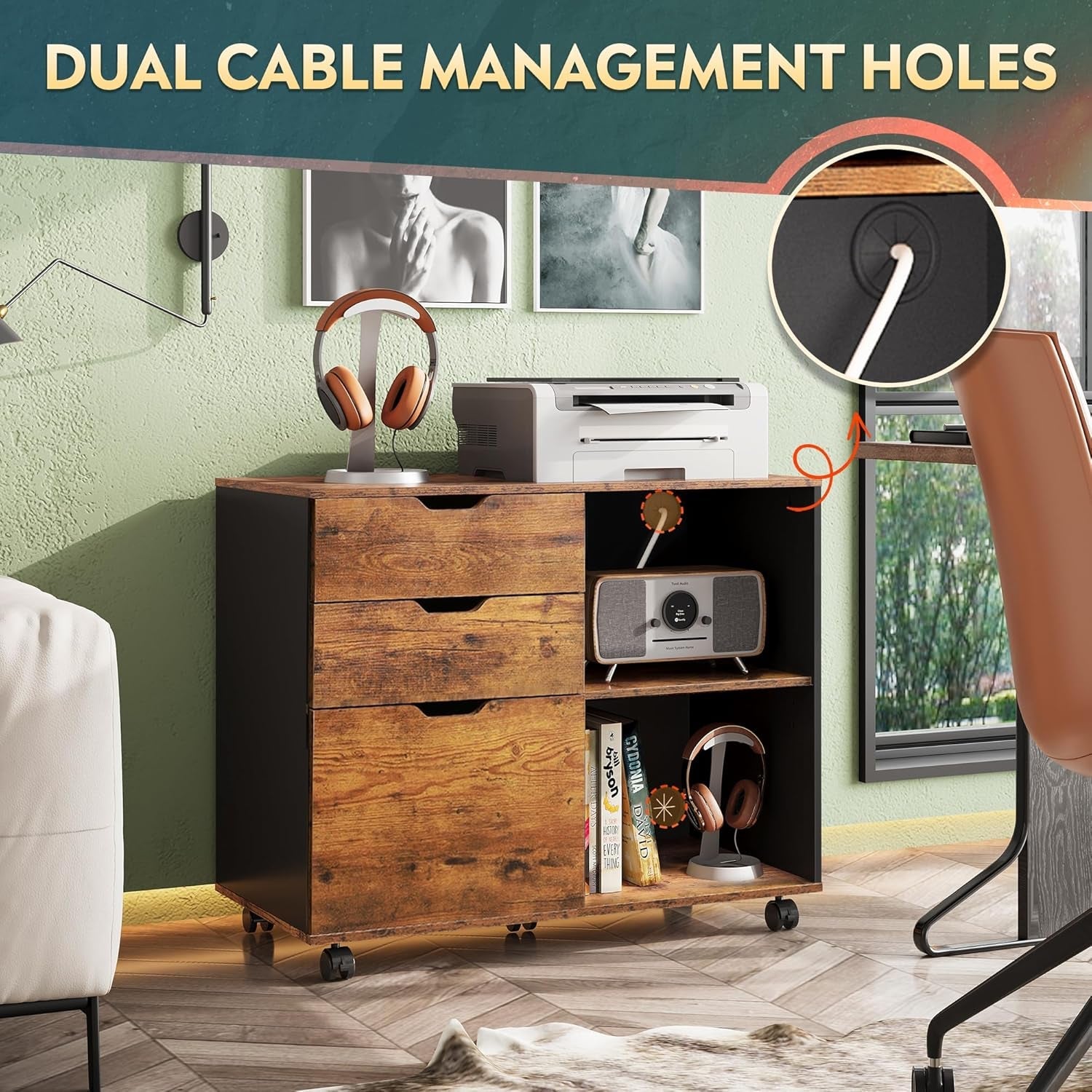 Transform your home office with a versatile, space-saving 3-drawer wood file cabinet that also serves as a printer stand. In a warm rustic brown finish, this mobile lateral filing cabinet blends style with smart organization for space-conscious workspaces.