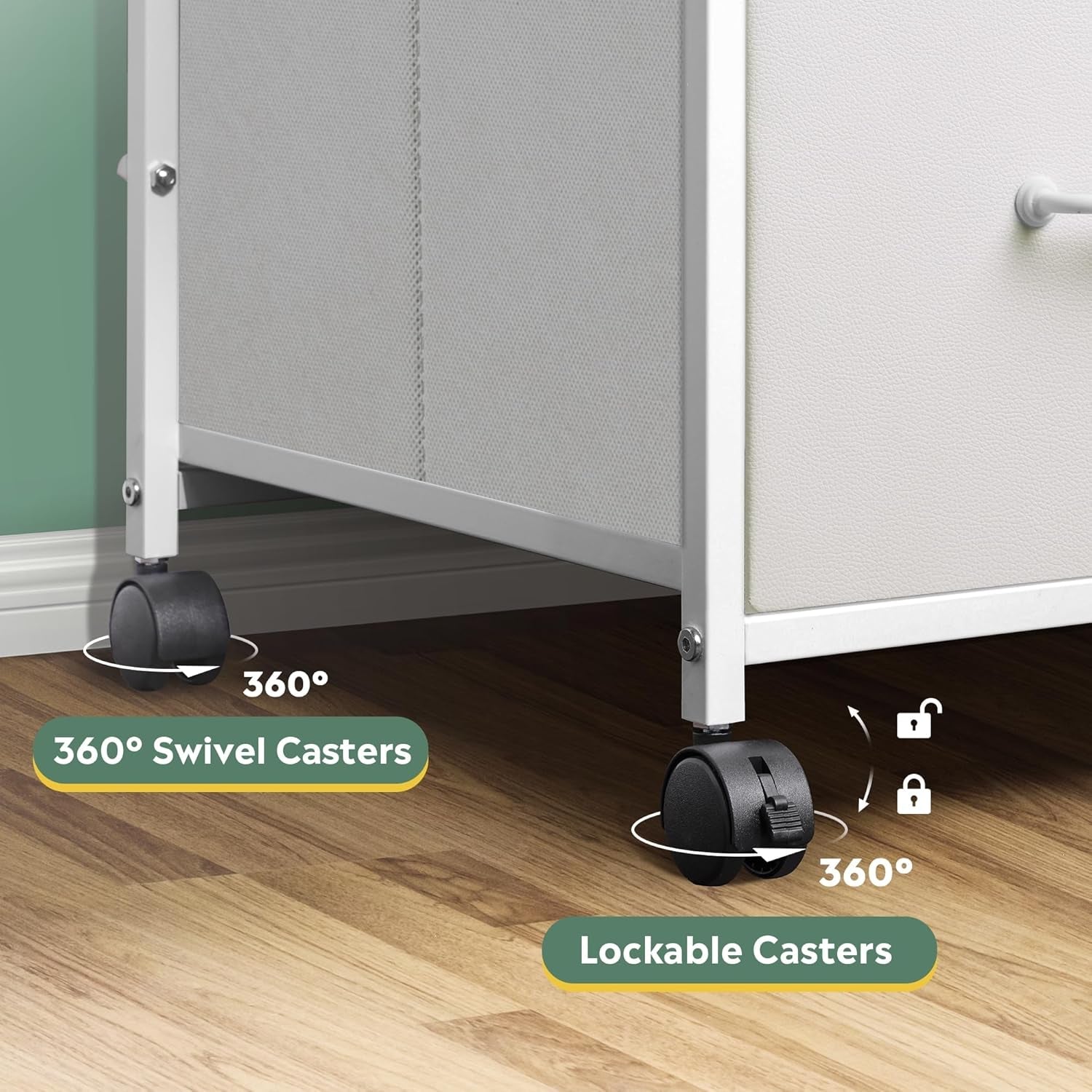 Easy setup: sturdy steel frame, wooden desktop, and fabric drawers are paired for reliable storage plus quick, tool-free assembly with included instructions.