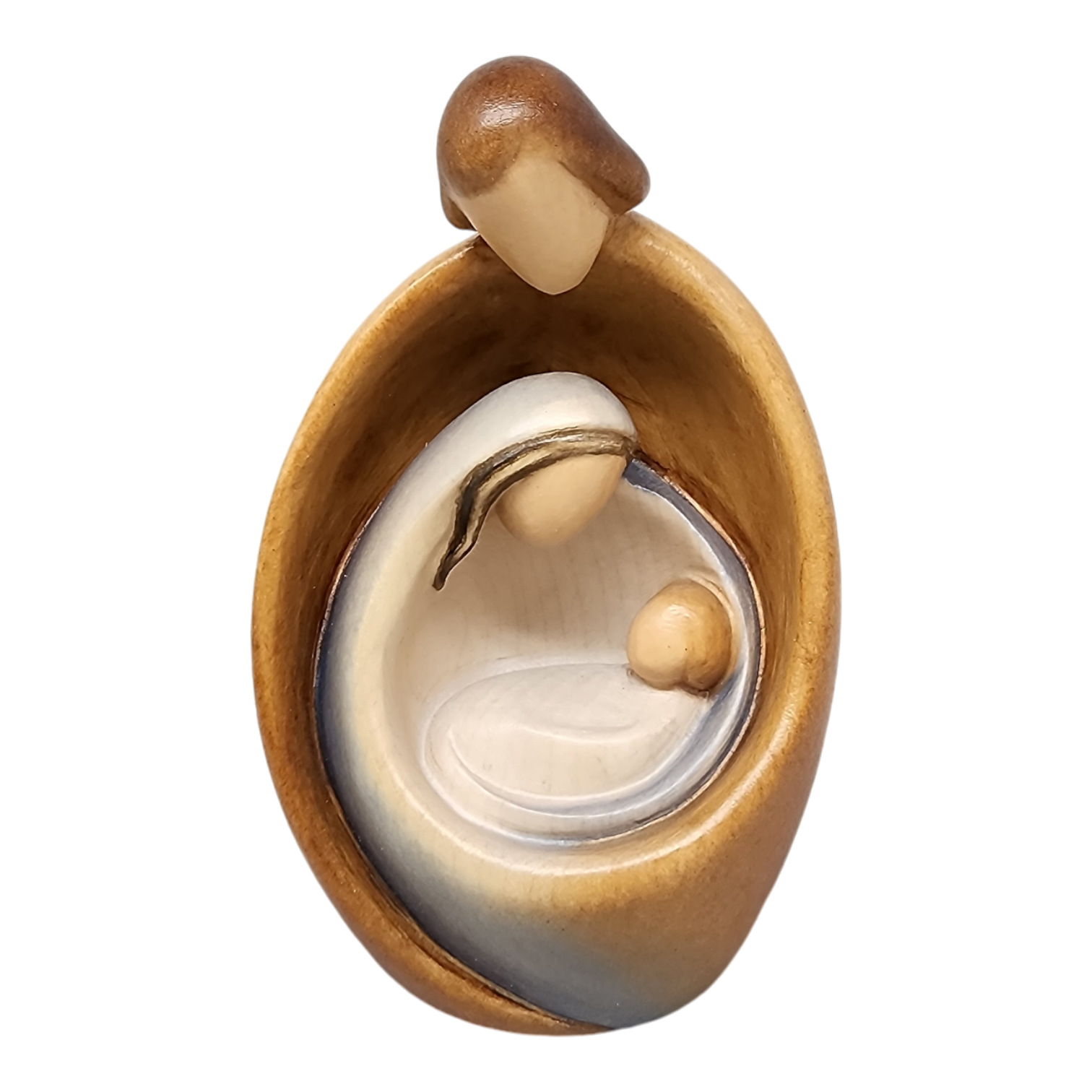 Presenting our beautifully crafted "Holy Family" nativity ornament, hand-carved from exquisite Maple wood in Italy. This stunning piece features an intricate depiction of Mary, Joseph, and Baby Jesus, capturing their serene and loving essence within a sleek, oval-shaped frame.